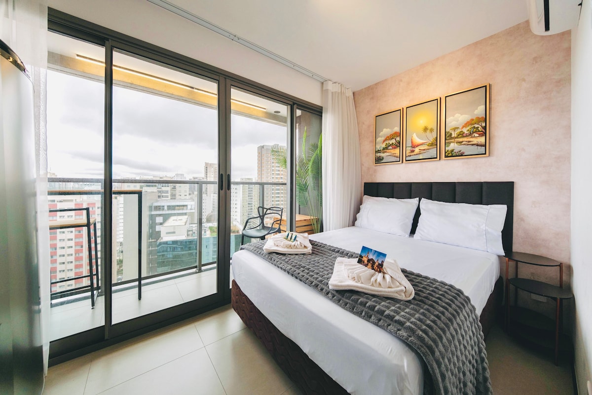 Լիովին կահավորված ստուդիա ՝ գերազանց անկողնային և լոգարանի սպիտակեղենով և բոլորովին նոր, որակյալ կենցաղային պարագաներով ։ Տանիքի լողավազան ՝ քաղաքի տեսարանով ։ Անբասիր տեղադրություն ՝ Ավենիդա Պաուլիստայի հարևանությամբ և Պարաիսո մետրոյի կայարանի անմիջապես վերևում (Blue -1 և Green -2 Line ինտեգրում), որը կատարյալ է նրանց համար, ովքեր ձգտում են շարժունակության և Սան Պաուլոյի բարձրակարգ թաղամասի սրտում գտնվելու ։