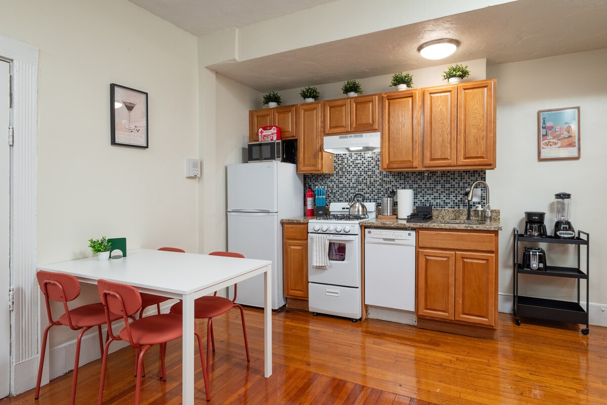 Beautiful and spacious one bedroom apartment up to 4 people with a free parking spot. Amazing location, in front of the T (subway). It is extremely safe and one of the coolest neighborhoods in town. Hop on the T, and you'll only be a few stops away from Fenway Park and Back Bay. Parking spot disclosure: Parking spot is just 3 minutes walking from the building. Enjoy a stylish experience at this centrally-located place.