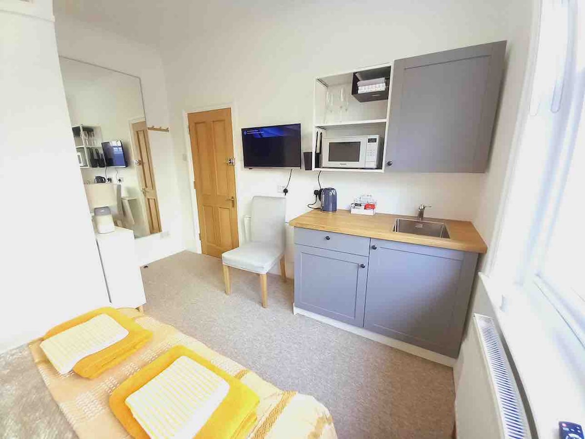 Վայելեք նորաոճ և հարմարավետ փորձառություն Քեմբրիջի սրտում գտնվող այս կենտրոնում գտնվող այս կենտրոնում ։ Այս փոքրիկ «միկրո բնակարանը» ունի այն ամենը, ինչ անհրաժեշտ է հարմար հանգստի համար, ընդամենը 3 րոպե քայլում է Բրայթոնի Բոհեմյան թաղամասում գտնվող ծովափից: Հարմարավետ մահճակալ, en suite ցնցուղ, խոհանոցիկ միկրոալիքային վառարանով, սառնարան, թեյնիկ և տոստեր, Սմարթ հեռուստացույց, սեղան ՝ նստելու և աշխատելու/ճաշելու համար: Հարթավայրի առջևի մասում (փողոցի կողմում) կա դրսի տարածք ՝ պատիոյի սեղանով և աթոռներով ։
