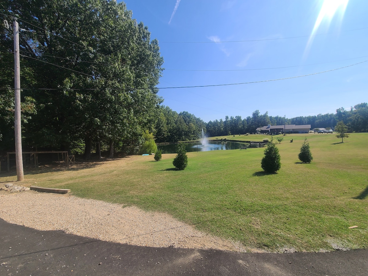 Our property isn't just a place to spend the night, its a destination. A place to relax. We have been blessed to call this beautiful farmstead home for over 30 years. Upon entering the property you will traverse along the winding drive, rolling hills, across the lake on the covered bridge, and up the hill to the log home. Be sure to look around for the many deer, geese, ducks, turkeys, and other wildlife that also call our farm home.