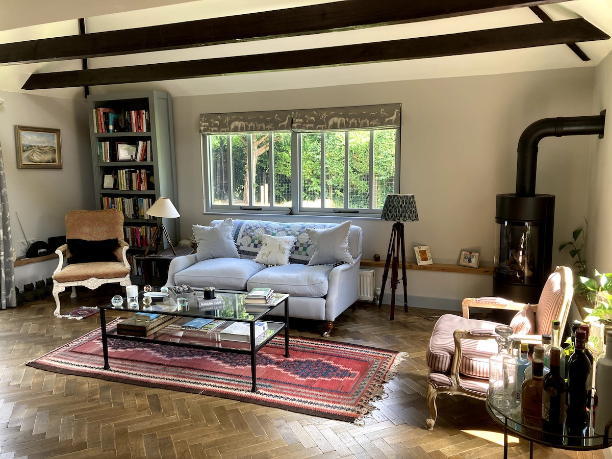 A wonderful, welcoming barn conversion in an excellent location on the Hampshire / Berkshire border. Exposed beams provide a lovely rustic feel in the large, light and open plan living space. Kitchen has 2 induction hobs and microwave and a mini fridge. Cooking utensils available in the well stocked kitchen. Reliable wifi, large digital flatscreen TV and Sonos music system. Twin beds in a homely bedroom with separate shower room.