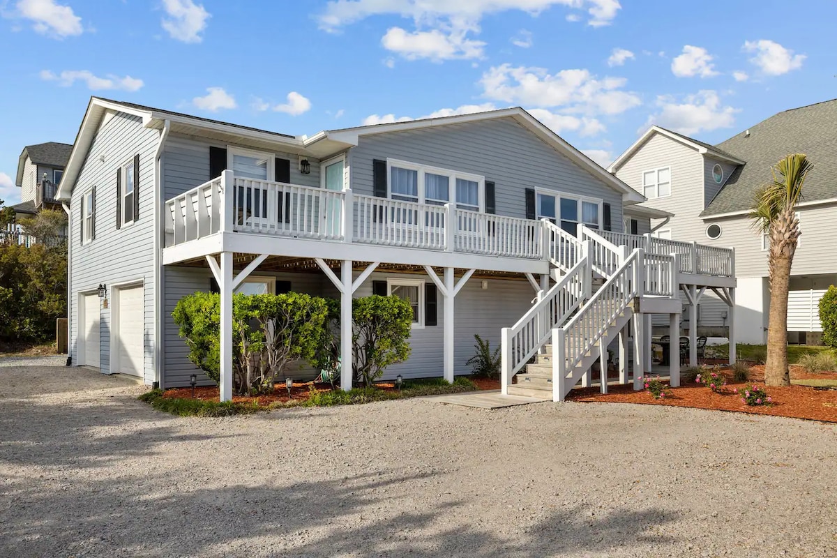 Pet friendly home with walk to both the beach and the sound in under 3 minutes. Our 3-bedroom beach house sleeps 8 and features four decks, a fenced yard for pets, and private neighborhood beach access. Perfect for families, fishing trips, or relaxing beach getaways. We are only a 3 minute walk to several shops and restaurants including a seafood market as well as an ice cream parlor. Slightly down the road you can enjoy mini golf, go carts as well as bumper boats.