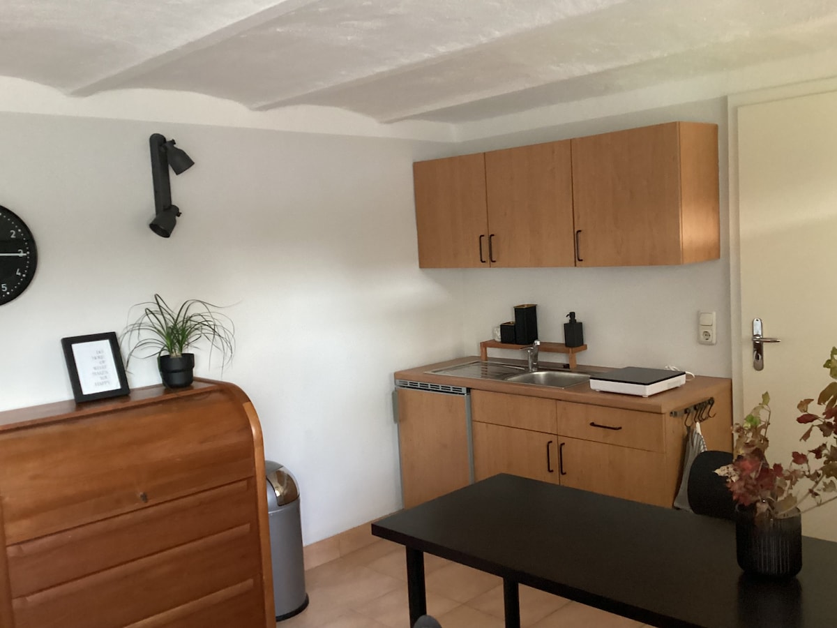 Մեր բնակարանը գտնվում է իր սեփական բնակելի շենքում ՝ առաջին հարկում և հանգիստ վայրում ՝ Բադ Դոբերան քաղաքի ծայրամասում: 42մ ² մակերեսով մեր բնակարանը կարող է տեղավորել մինչև 4 մարդ: Ննջասենյակը կարող է տեղավորել 2 հոգի ՝ մեծ երկտեղանոց մահճակալով և մեծ հայելային պահարանով: Եվս 2 մահճակալ գտնվում է հյուրասենյակում ՝ դուրս քաշված բազմոցի վրա 1.50 ×2.00 Հարցերի դեպքում կարող եք ցանկացած պահի դիմել մեզ ։