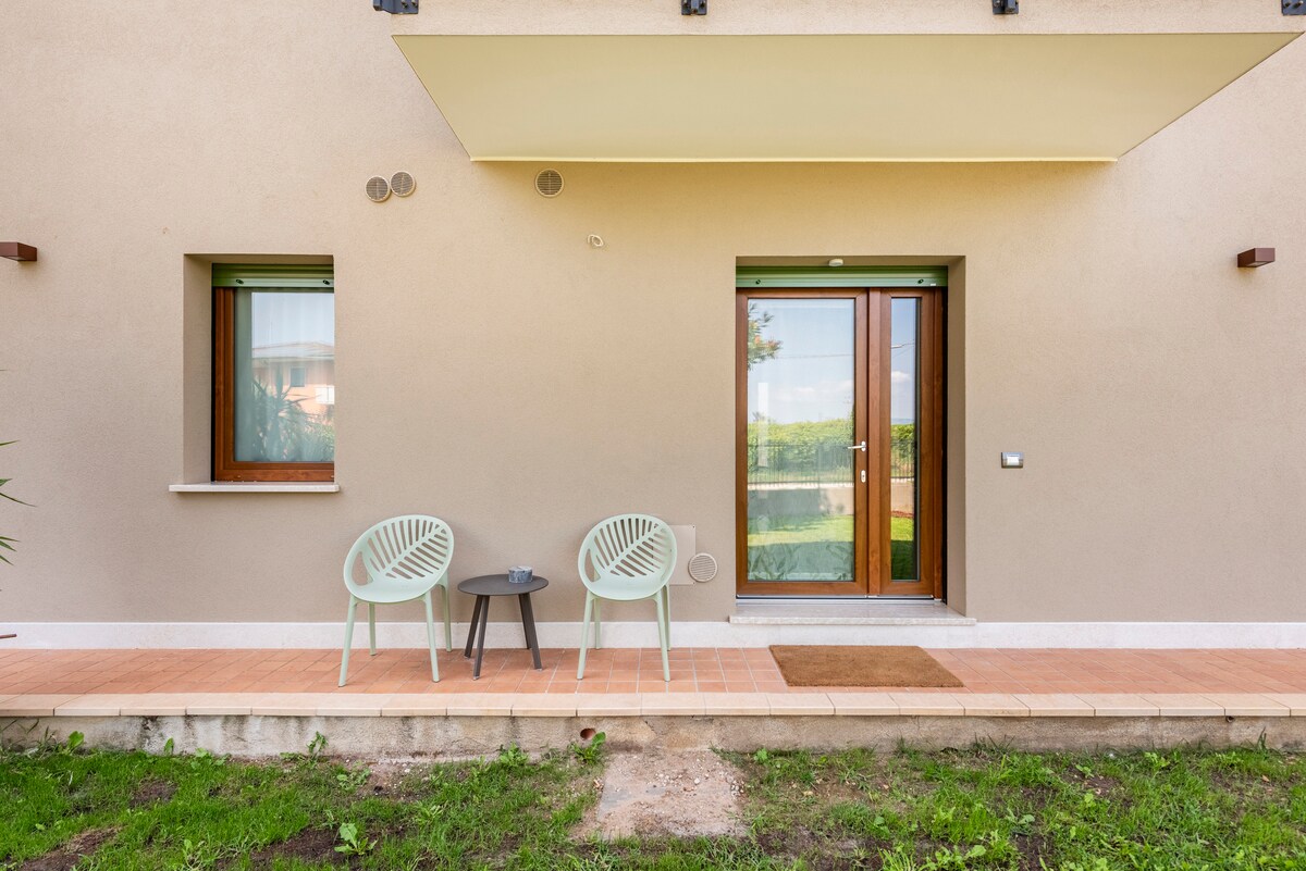 Ամբողջ բնակարանը նոր է վերանորոգվել, որը գտնվում է Վերոնայի և Վիչենցայի միջև ՝ հանգիստ բնակելի միջավայրում ։ Խնամքով կահավորված, այն տեղավորում է մինչև 5 մեծահասակ (2 երկտեղանի մահճակալ, 1 բազմոց մահճակալ) և երեխայի մահճակալում: Ամբողջական խոհանոց ՝ 6 սեղանով, բարձր աթոռ երեխայի համար և բարձր աթոռակ երեխայի համար: Ընդարձակ լոգասենյակ ՝ հարմարավետ ցնցուղով, պահարան ՝ լվացքի - չորանոցով և արդուկով ։ Կայանատեղին միշտ հասանելի է փողոցում ՝ այգու դիմաց ։ Նվազագույնը 2 գիշեր, 1 գիշեր ըստ պահանջի (պետք է ստուգվի):