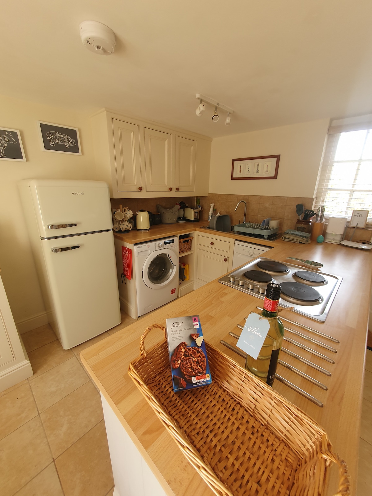 The house is a converted coach house set in beautiful gardens and an ideal base from which to explore the area's many attractions. There are two double rooms (one of which can be converted to a twin) both with ensuites. Fully furnished chalet style kitchen, with an induction hob and small fridge with an ice box. Perfect for creating light meals and additional fridge storage is available if needed. Cozzy living area with smart TV and circular table for seating 4.