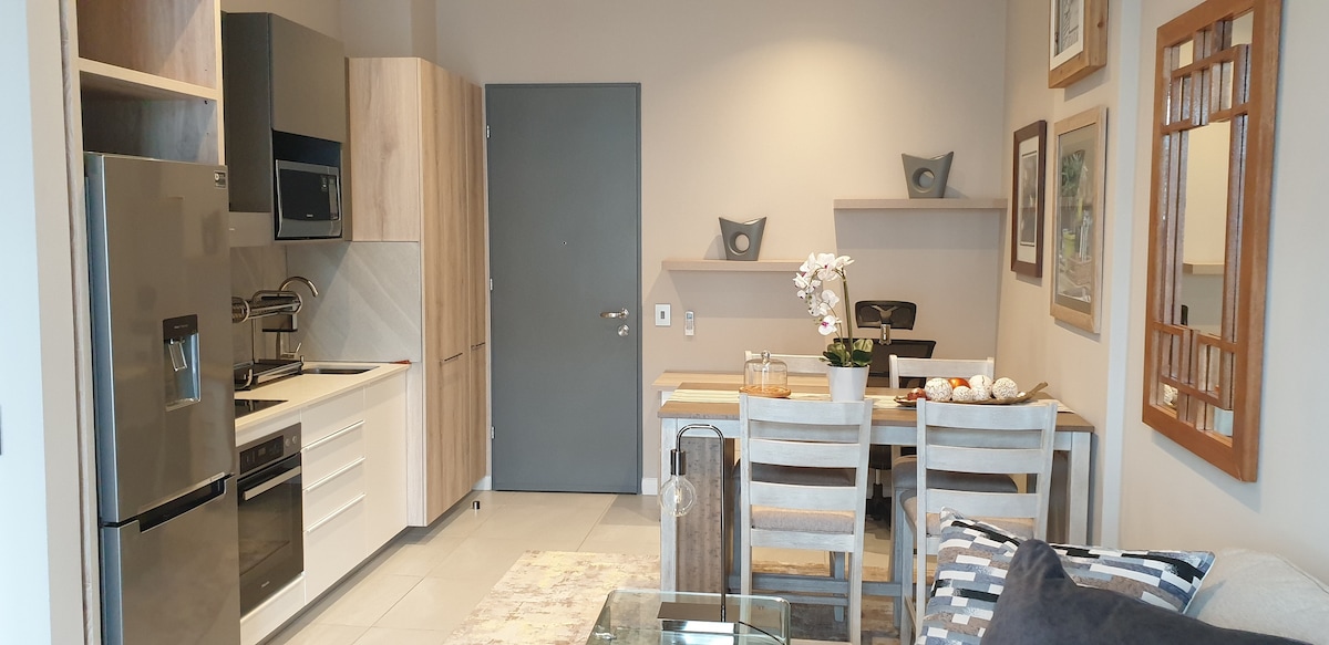 Գեղեցիկ, պաշտպանված և հարմարավետ բնակարան մի շարք ժառանգության վայրերի, կրթական և առողջապահական հաստատությունների, ճաշելու և ժամանցի հոյակապ տարբերակներ, հիանալի մարզական հաստատություններ և տեսարժան վայրեր: Այս շքեղ ընդարձակ մեկ ննջասենյակով բնակարանը նորաձև է ժամանակակից հարդարանքներով, որը բաղկացած է լավ կահավորված խոհանոցից ՝ խոհանոցի կոմունալ հարմարություններով, երկտեղանի մահճակալից, հարթ էկրանով Smart - TV - ից ՝ Netflix - ից և Showmax - ից օգտվելու հնարավորությամբ, չբացված անվճար Wi - Fi - ից և ՀԵՏԵՒԻ հոսանքից ՝ բեռի թափման ընթացքում ։