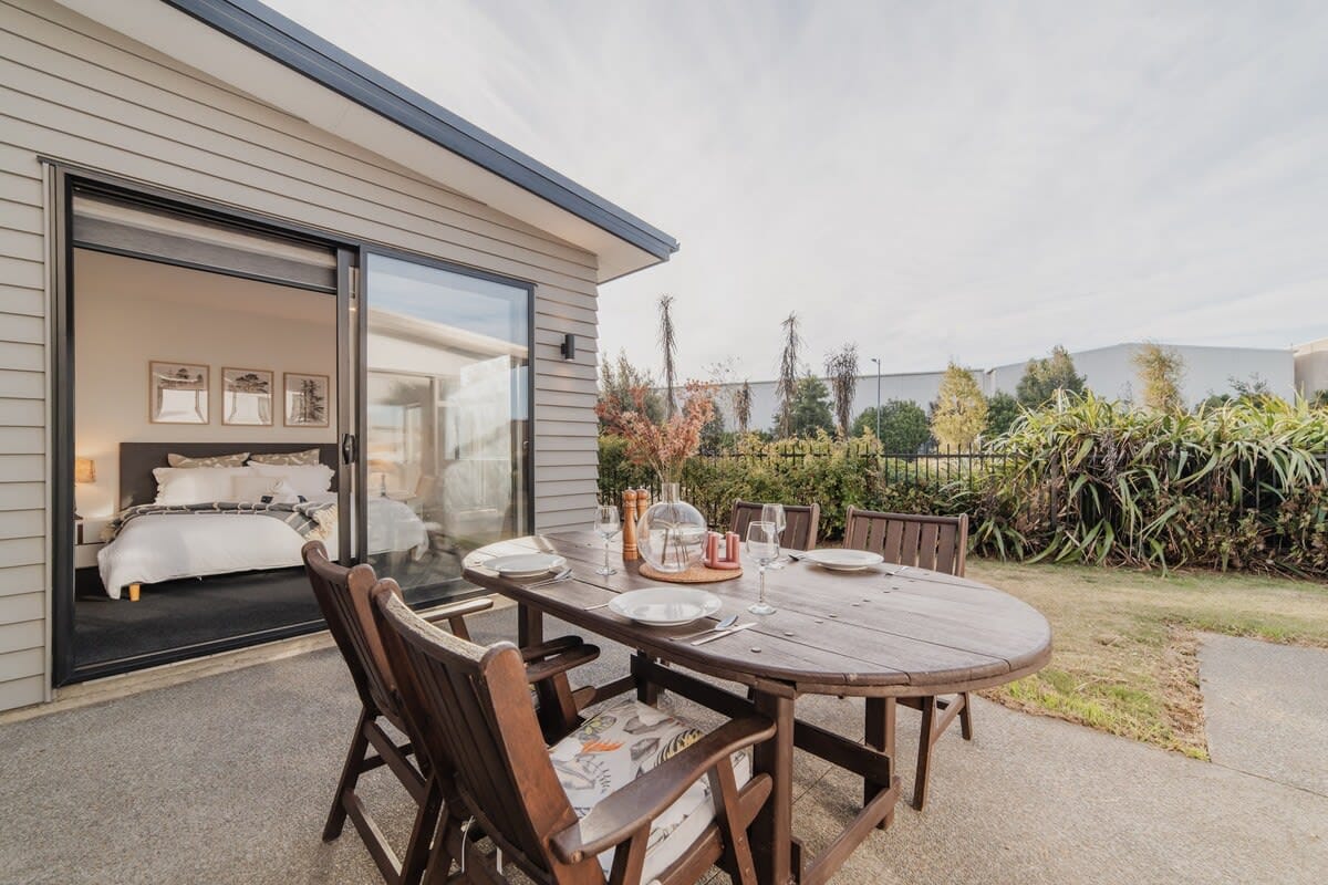 You'll love this Spa escape. Great location close to Airport and CBD. Features: fully equipped kitchen, niched tiled bathroom, foldable desk/work station, built-in mirror wardrobe, laundry dryer/washer cabinet, dimmable lights and a heat pump. Private covered outdoor area with hammock, decking, outdoor dinning , Spa Bath, bbq and outdoor heating. 1 parking place available in the driveway.