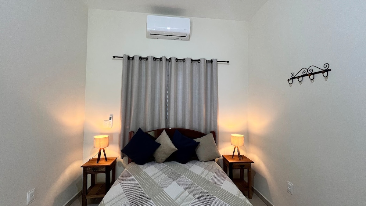 Cercada por cafezais, a Suíte Encanto é um refúgio romântico em meio à natureza. Localizado em frente ao Agromonges, o quarto conta c/ uma cama aconchegante, ar-condicionado, TV, internet starlink e varanda com vista p/ o jardim. A cozinha compartilhada convida a preparar refeições a dois. Ao entardecer, o canto dos pássaros e o brilho do céu tornam cada momento pura harmonia e amor. ❤️ Desfrute de uma estadia única, onde o ar puro e o encanto do campo tornam cada instante inesquecível.