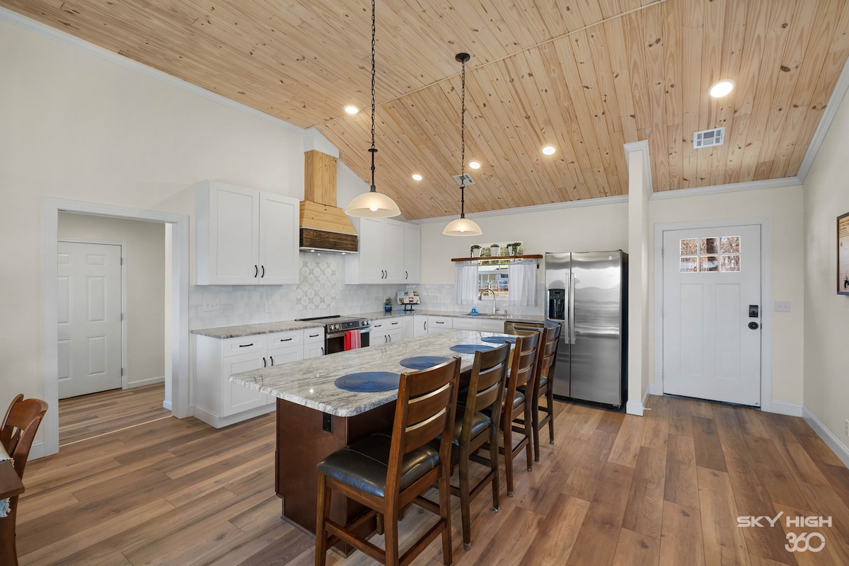 This home was built from salvaged timbers from the local area.Home has tall open ceiling and a timber staircase to the balcony,custom oak floors(also made from salvage timber)Master bed is complete with a master bath with huge rock shower that was made from local creek stones .Up stairs has king bed,120"movie theater, extra seating. Full length back porch leads to the hot tub. It truly is one of a kind