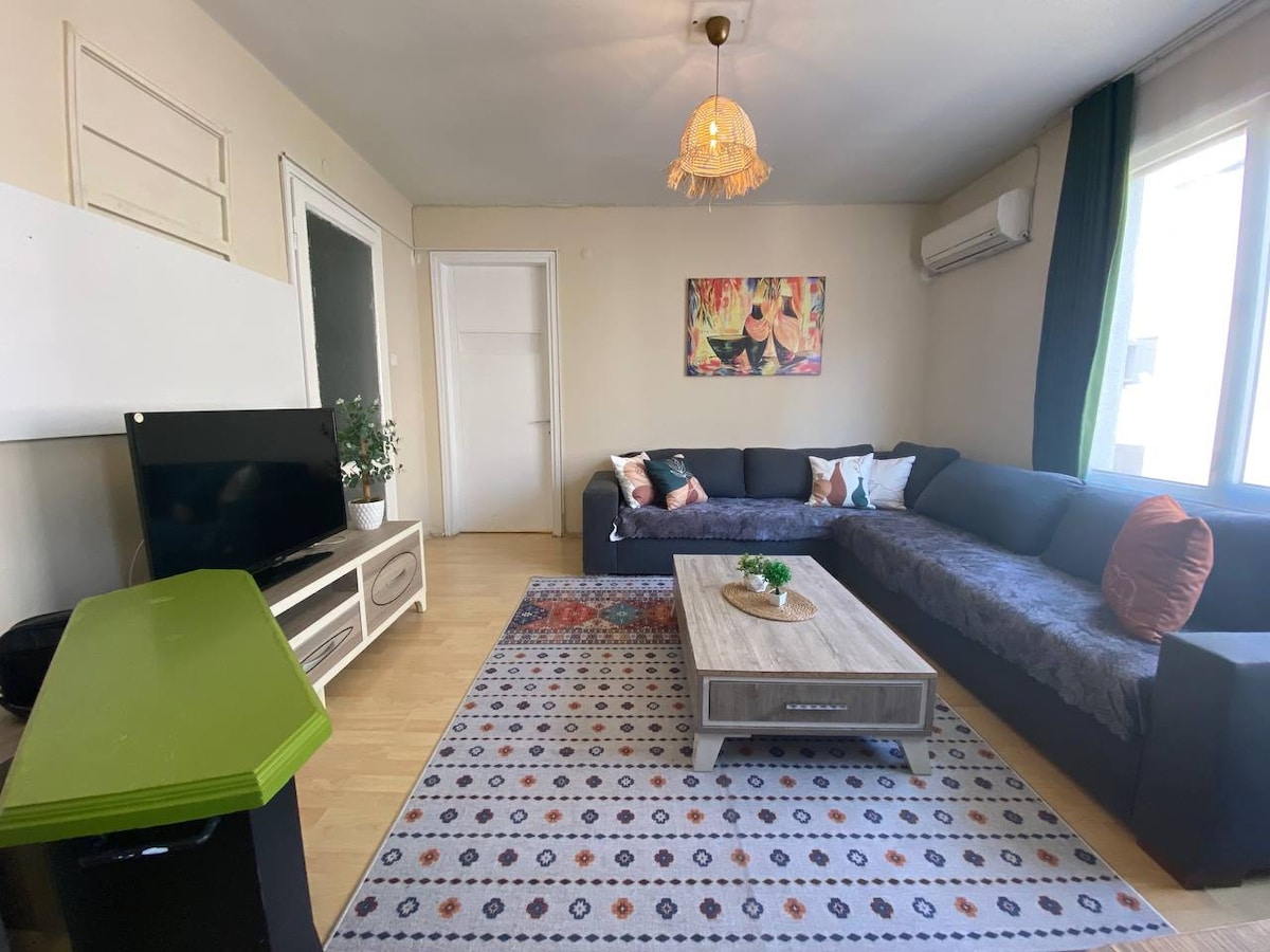 Ողջույն:) Սա նորաոճ և կենտրոնամերձ վայր է: 2 րոպե ոտքով մինչև Üçyol կենտրոն, որտեղ կարող եք գտնել այնպիսի հարմարություններ, ինչպիսիք են շուկաները, հացաբուլկեղենի խանութները և բոլոր տեսակի մթերային խանութները: Ստորգետնյա խողովակը և ավտոբուսի կանգառները նույնպես 2 րոպե հեռավորության վրա են, գտնվում են Üçyol կենտրոնում: Պատմական վերելակից ընդամենը 5 րոպե հեռավորության վրա եք գտնվում ։ Դուք կարող եք քայլել դեպի ծովափ (Karataş) 6 -7 րոպեում և տրամվայը տանել դեպի Ալսանկակ և Գյոտեպե: