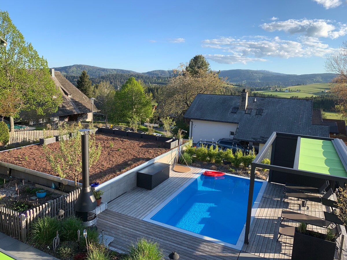 իդեալական է փոքր ընտանիքների, սպորտային հանգստի սիրահարների, հատկապես լեռնային հեծանվորդների, արշավականների, բնության սիրահարների համար: Շատ հանգիստ տեղադրություն, պայծառ և գեղեցիկ կահավորված ։ Հասանելի է տեռասի միջոցով ։ Konus հյուրի քարտով անվճար օգտվեք հասարակական տրանսպորտից ։ Էքսկուրսիայի ուղղություններ ՝ Tierpark Tatzmania in Löffingen 30 min. Europapark Rust 45 րոպե Bergwildpark Steinwasen 20 րոպե Շուրջբոլորը լեռնային հեծանվորդներ և արշավականների դրախտային արահետներ Titisee 20 րոպե Տրիբերգի ջրվեժները ՝ 45 րոպե