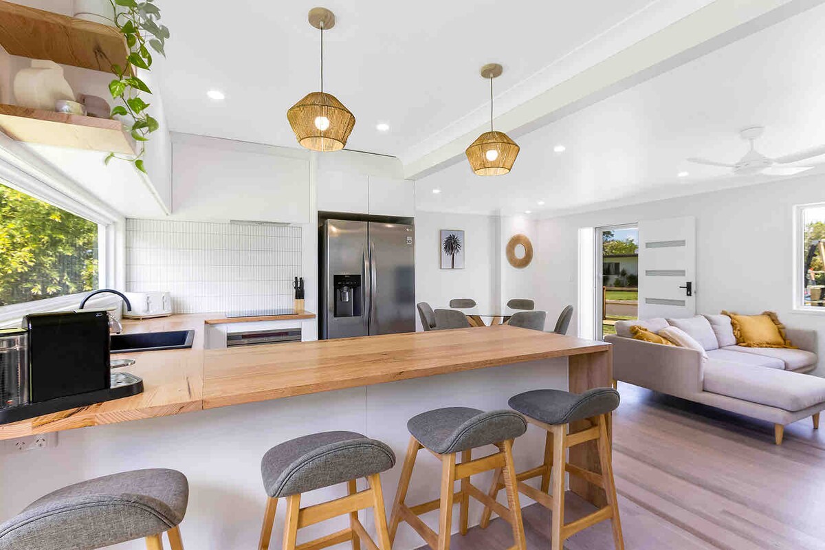 Ժամանակակից Մարոխիդոր լողափնյա տուն, որը ոտքով հեռավորության վրա է մինչև խանութներ, սրճարաններ, ռեստորաններ և Cotton Tree լողափ ։ Ցուցադրվում է ՝ • Երեք ննջասենյակ (քնում է 7) • Լիովին ֆունկցիոնալ խոհանոց և լվացքատուն • Օդորակման աշխատանքներ ամբողջ տարածքում • Հիանալի բացօթյա ժամանցային տարածք և խորոված • փողոցից դուրս կայանատեղի • Անվճար Wi - Fi • Ընտանիքի համար հարմար լիովին փակ այգի • յուրաքանչյուր ամրագրման համար առավելագույնը 2 շուն • Հանգիստ թաղամասը • Բաց է ավելի երկար այցերի համար Վայելեք այն ամենը, ինչ առաջարկում է Սանշայն Քոստը ՝ մնալով այս գեղեցիկ տանը ։