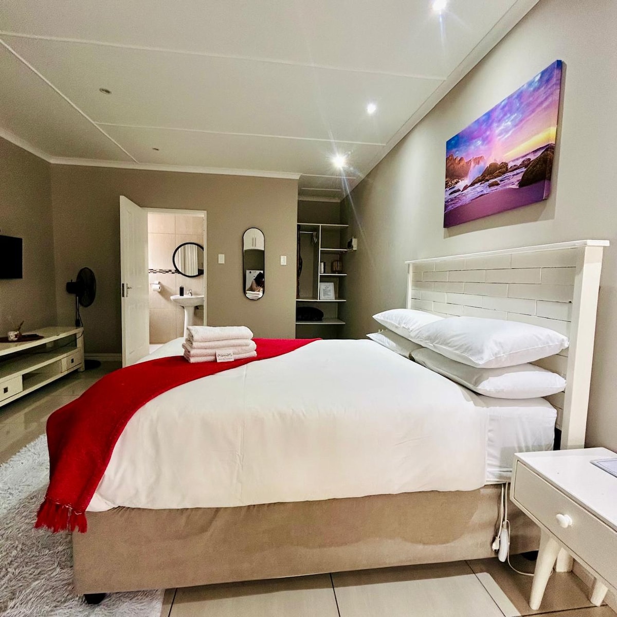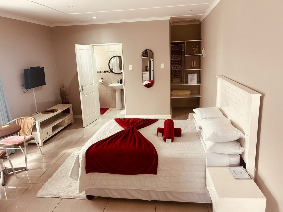 Եթե փնտրում եք գեղեցիկ, կենտրոնացված ինքնասպասարկման բնակարան ՝ անխռով միջավայրով, ապա այս բնակարանը հենց ձեզ համար է ։ Տեղակայված է գեղեցիկ այգում, այս բոլորովին նոր, գործադիր հավաքակազմը գտնվում է կանաչապատ տարածքում ՝ առատ թռչնաշխարհով, սակայն ընդամենը 1,5 կմ հեռավորության վրա դեպի բիզնես/ մանրածախ և կենսակերպի հանգույցներ: Հանգստացեք և հանգստացեք 100% բամբակյա սպիտակեղենի և մեծ մահճակալի հարմարավետության մեջ ։ Լիովին կահավորված խոհանոց, օպտիկամանրաթելային Wi - Fi և Netflix ։ Ավտոտնակի անվտանգ կայանատեղի ։ Նախաճաշ ՝ ըստ պահանջի ՝ ըստ պահանջի ։
