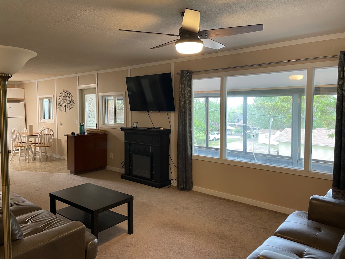 Վայելեք ձեր այցը մեզ հետ ամբողջական խոհանոցում (սառնարան, գազօջախ, լվացարան, միկրոալիքային վառարան, Keurig )։ 2 BR ՝ Queen - ի չափը ՝ Master - ի, իսկ Double - ը ՝ այլ ։ Հյուրասենյակում թաքնված բազմոցը թույլ է տալիս միաժամանակ մնալ 6 հյուրի ։ Լոգասենյակում կա լոգարան և ցնցուղ ։ Moose Jaw Events Centre - ի մոտակայքում ՝ հոկեյի խաղերի և համերգների, ինչպես նաև Յարա կենտրոնի համար: Անվճար համօգտագործվող լվացքատուն տարածքում ։ Զբոսնեք զբոսայգով և բացօթյա սահադաշտով անցեք փողոցով ։ Սեփականությունն ունի պատիո և մանղալ։