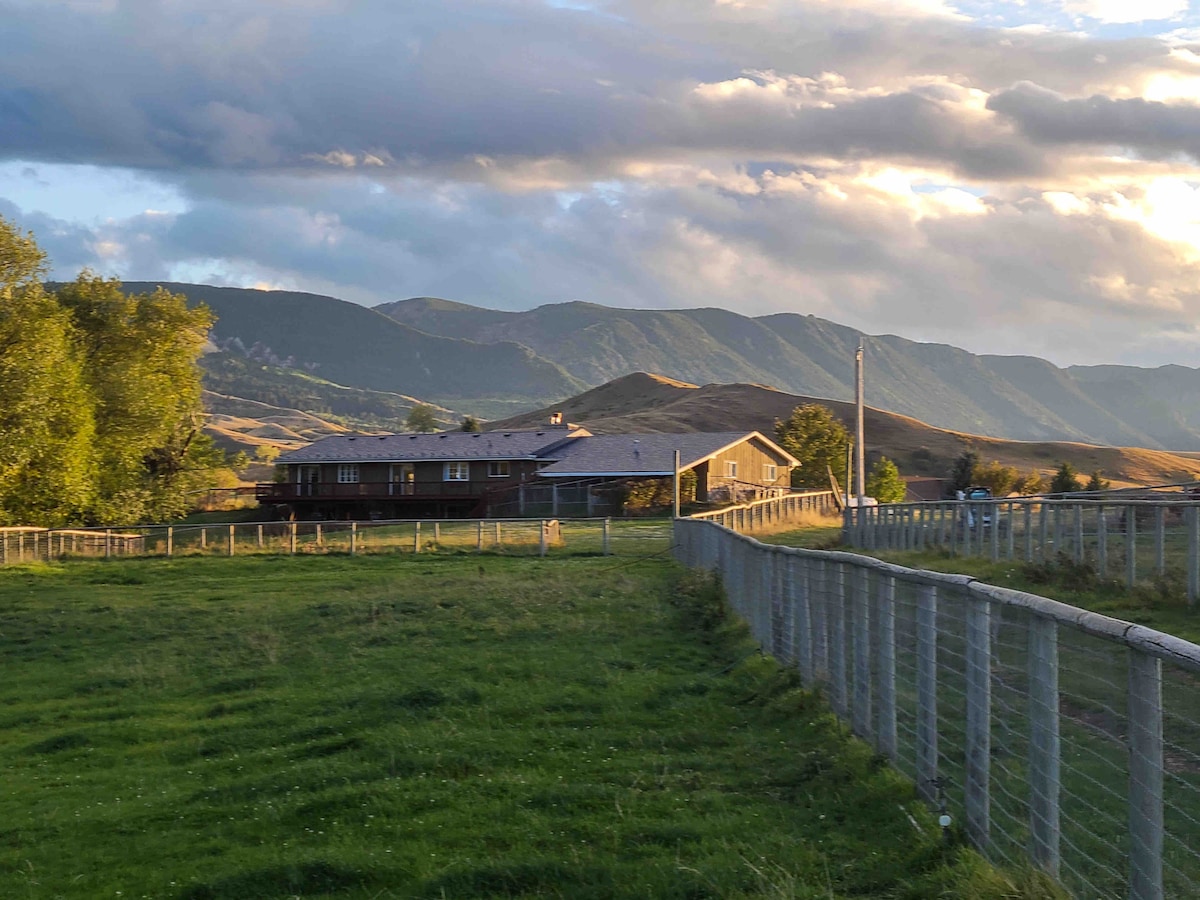 Idyllic farm setting located below the Big Horn Mountains. Enjoy laying in hammock alley while watching Alpacas graze in the pasture w/ the Mountains as your back drop or read a book and listen to the symphony of birds & the clucks of happy chickens. You’ll feel enveloped by nature & the slow relaxing pace of the farm w/ open access to the farm animals. Enjoy the wide open spaces w/ abundant wildlife, & unobstructed views of the Big Horn Mountains w/ a vast country night sky filled with stars.