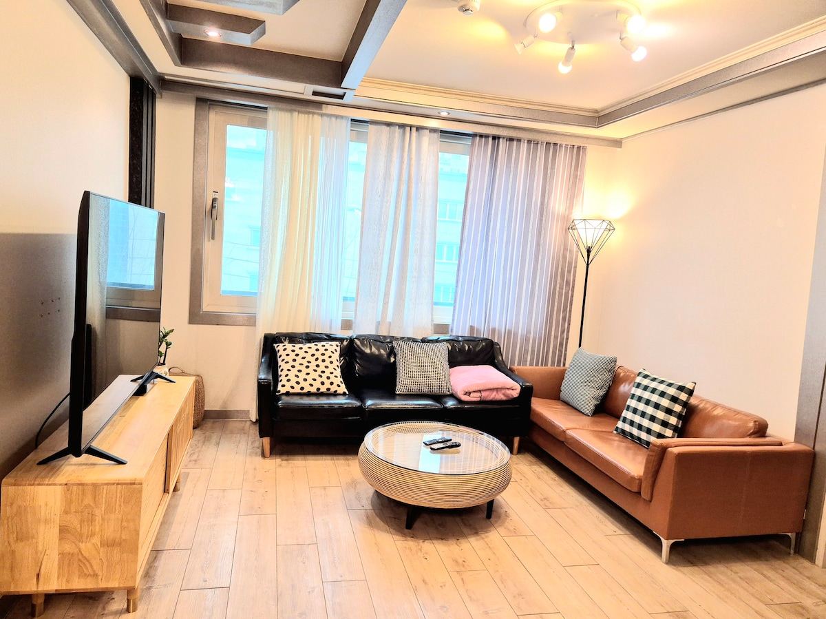 Ուղևորությունը հաճելի դարձրեք ձեր ընտանիքի, ընկերների և սիրելիների հետ՝ հարմարավետ և ջերմ միջավայրում։ Տունը գտնվում է բնակելի թաղամասում, ուստի գիշերը համեմատաբար հանգիստ է, և դուք կարող եք հանգիստ մնալ հոգնեցուցիչ օրվանից հետո։ Հիմնական տեսարժան վայրերը՝ Յոնգիլ համալսարանի «Հևու» բաղնիքը, «Սկայուոք» զբոսայգին և «Հվանհո» զբոսայգին, մեքենայով 5-7 րոպե հեռավորության վրա են, իսկ ռեստորանները, սրճարանները, շուկաները և շուրջօրյա խանութները հենց առաջին հարկում են, այնպես որ կարող եք դրանք հեշտությամբ օգտագործել ցանկացած ժամանակ։ Կայանելու շատ տեղ կա, այնպես որ անհանգստանալու կարիք չկա (բնակարանի դիմաց կա անվճար կայանատեղի)։