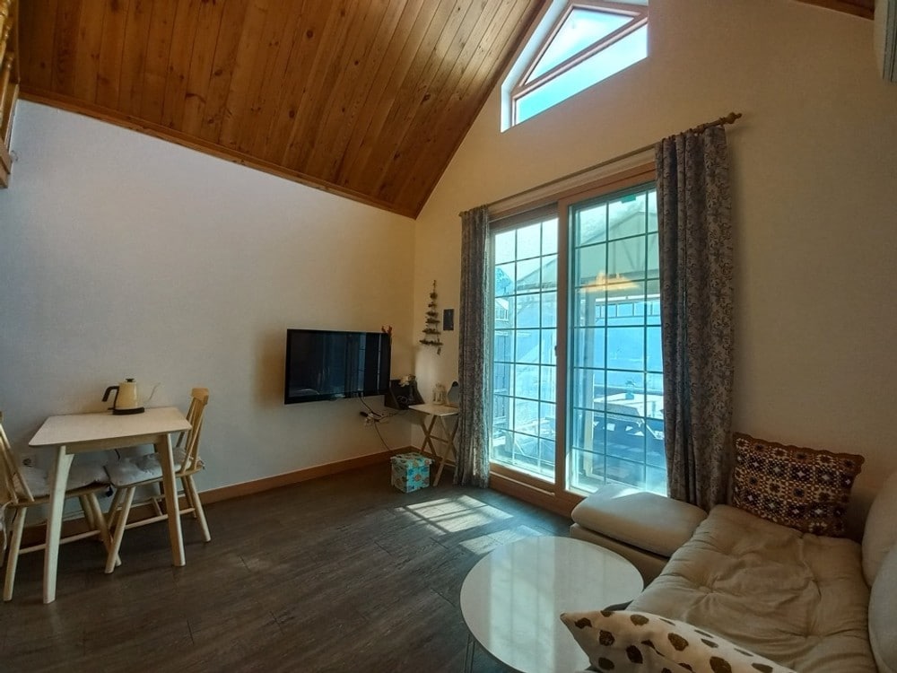 Դա մասնավոր շենք է, որը գտնվում է Գյոմբյոնսան բլրի վրա՝ Kim Yu-jeong Munhak գյուղի հետևում, որտեղ մեկ խումբ կարող է ամբողջությամբ վայելել պարտեզը և կացարանը մեկ օրվա ընթացքում։ Մենք տրամադրում ենք 100% բամբակյա սպիտակեղեն և արևի լույսի հոտով լցված, եռացված սրբիչներ՝ ամեն անգամ, երբ լվացք եք անում։ Այն լուսավոր տարածք է, որտեղ արևի լույսը ներթափանցում է մեծ պատուհանով։ Սա ստուդիայի տեսակի բնակարան է՝ երկու առանձին մահճակալներով, որոնք տեղադրված են կողք կողքի, այնպես որ հիմնականում նախատեսված է 2 մեծահասակի համար, և կարող են տրամադրվել լրացուցիչ մահճակալներ մինչև 4 անձի համար, և կարող են մուտք գործել մինչև 4 անձ, այդ թվում՝ մանուկներ։ Մինչև 2 տարի (մինչև 24 ամիս) անվճար է, և լրացուցիչ անկողնային պարագաներ չեն տրամադրվում, եթե անվճար է։ Կարող եք տեսնել Սամաքսան լեռը, իսկ եթե եղանակը լավ է, կարող եք տեսնել գեղեցիկ մայրամուտը՝ լի կարմիր լույսով։ Մենք նախաճաշ ենք տրամադրում վճարովի (5000 վոն/անձ, 3000 վոն՝ տարրական դպրոցի աշակերտների համար/անձ, բրանչ՝ հաջորդական գիշերների համար և այլն)։ Եթե ցանկանում եք, խնդրում ենք պատվիրել նախապես։ Մենք խորովածի ծառայություն չենք տրամադրում։ Մեր կացարանում խոհանոց չկա, այնպես որ չեք կարող կերակուրներ պատրաստել։ Կարող եք օգտվել միկրոալիքային վառարանից և սրճեփից։