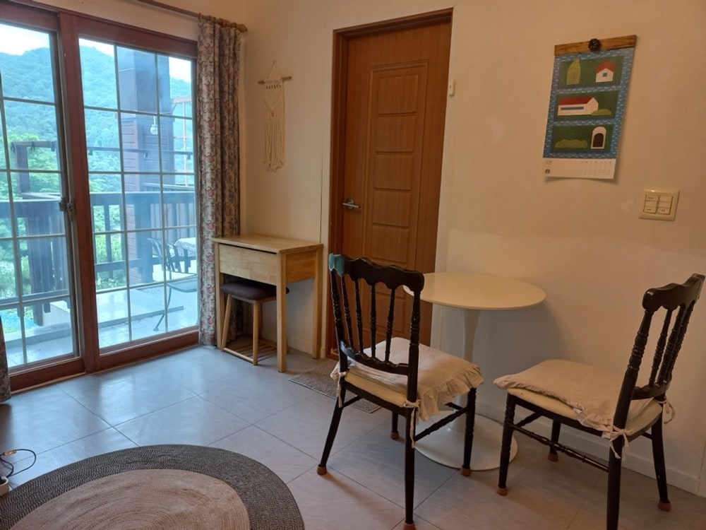 Սա հնաոճ սենսացիոն կացարան է Չանչեոնում ՝ լճափնյա քաղաքում ։ Այն գտնվում է Dongmyeon Janggak - ri - ում և գտնվում է Լեգոլանդից և Սոյանգ ամբարտակից 10 րոպե հեռավորության վրա: Այն մասնավոր տուն է երկրորդ հարկում և կարող է հարմարավետորեն օգտագործվել միայն ամրագրումների կառավարչի կողմից ։ Սենյակը բաղկացած է 2 - ից, և ընդհանուր առմամբ պատրաստված է 3 երկտեղանի մահճակալ ։ Առավելագույն տարողունակությունը 6 հոգի է ։ (Մարդկանց նվազագույն թիվը 3 է, իսկ 4 հոգուց կգանձվի լրացուցիչ գումար) Երկրորդ հարկում կա մասնավոր մանղալ ՝ լավ տեսարանով, և դուք կարող եք վայելել համեղ մանղալ ՝ ոչ թե փայտածուխով, այլ ոչ թե փայտածուխով ։ (20 000 վոն ՝ 4 կամ ավելի հոգու համար, 30 000 վոն ՝ 5 կամ ավելի հոգու համար ՝ տեղում վճարում) Թույլատրվում են փոքր շներ, և մեկ երեխայի համար մեկ գիշերվա համար կկատարվի լրացուցիչ 30 000 վոն (տեղում վճարում) sns Եթե կարծիք թողնեք (Airbnb - ի կարծիք, բլոգ, սրճարան, Instagram և այլն), մենք ձեզ կտրամադրենք պարզ նախաճաշ (սենդվիչ և սուրճ):(Խնդրում ենք նշել, որ ամրագրում կատարելիս կարծիք գրելու * հայտ է: Եթե ամրագրման պահին դիմում չունեք, այն չի տրամադրվի): Նախաճաշը տրամադրվում է միայն մեկ անգամ ՝ նույնիսկ անընդմեջ այցերի համար ։(Նախաճաշը չի տրամադրվում այն օրերին, երբ հատուկ իրավիճակ է տիրում Չուսեոկի, Շինյեոնգի, Գուջեոնգի տոնի և հյուրընկալողի համար ։