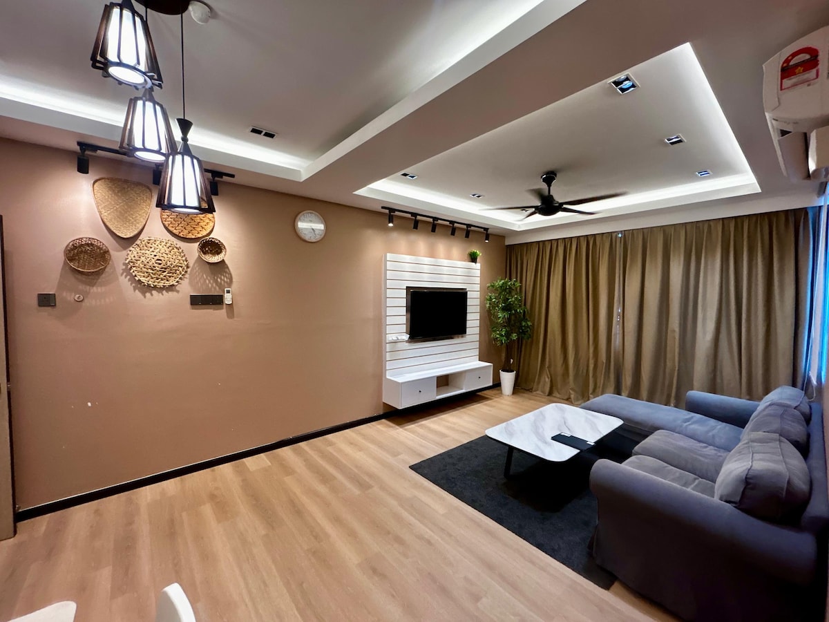 Welcome to The Cozy Haven Suite in the heart of Kuala Terengganu— a stylish, comfortable stay for families, small groups, and business travellers. With warm interiors, modern lighting, a cozy living area, clean kitchen, and relaxing bedrooms, it’s perfect for short or extended stays. Enjoy the comfort of home with a modern urban touch in a convenient city location.