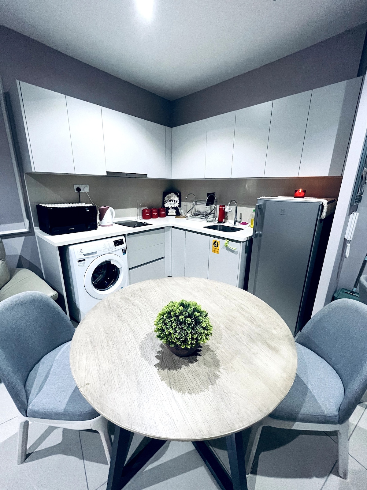 Ձեր հանգիստ հանգիստը քաղաքային կյանքից։ Վայելեք խնամքով ձևավորված տուն, որտեղ ժամանակակից ոճը համադրված է հարմարավետության հետ։ Այն լիովին հագեցած է հարմարություններով, որոնք ձեր այցը կդարձնեն հեշտ, և իդեալական է կարճատև հանգիստների կամ ավելի երկար այցերի համար։ ✔ 2 հարմարավետ ննջասենյակ ✔ Սմարթ հեռուստացույց և բարձրախոս ✔ 2 պատշգամբ ✔ Coway ջրի մաքրիչ (տաք, սառը և սենյակային ջերմաստիճանի ջրի ընտրություն) ✔ Օդը մաքրող միջոց ՝ մաքուր և մաքուր օդի համար ✔ 1 նշանակված կայանատեղի ✔️ 200 Մբիթ/վ Wi-Fi