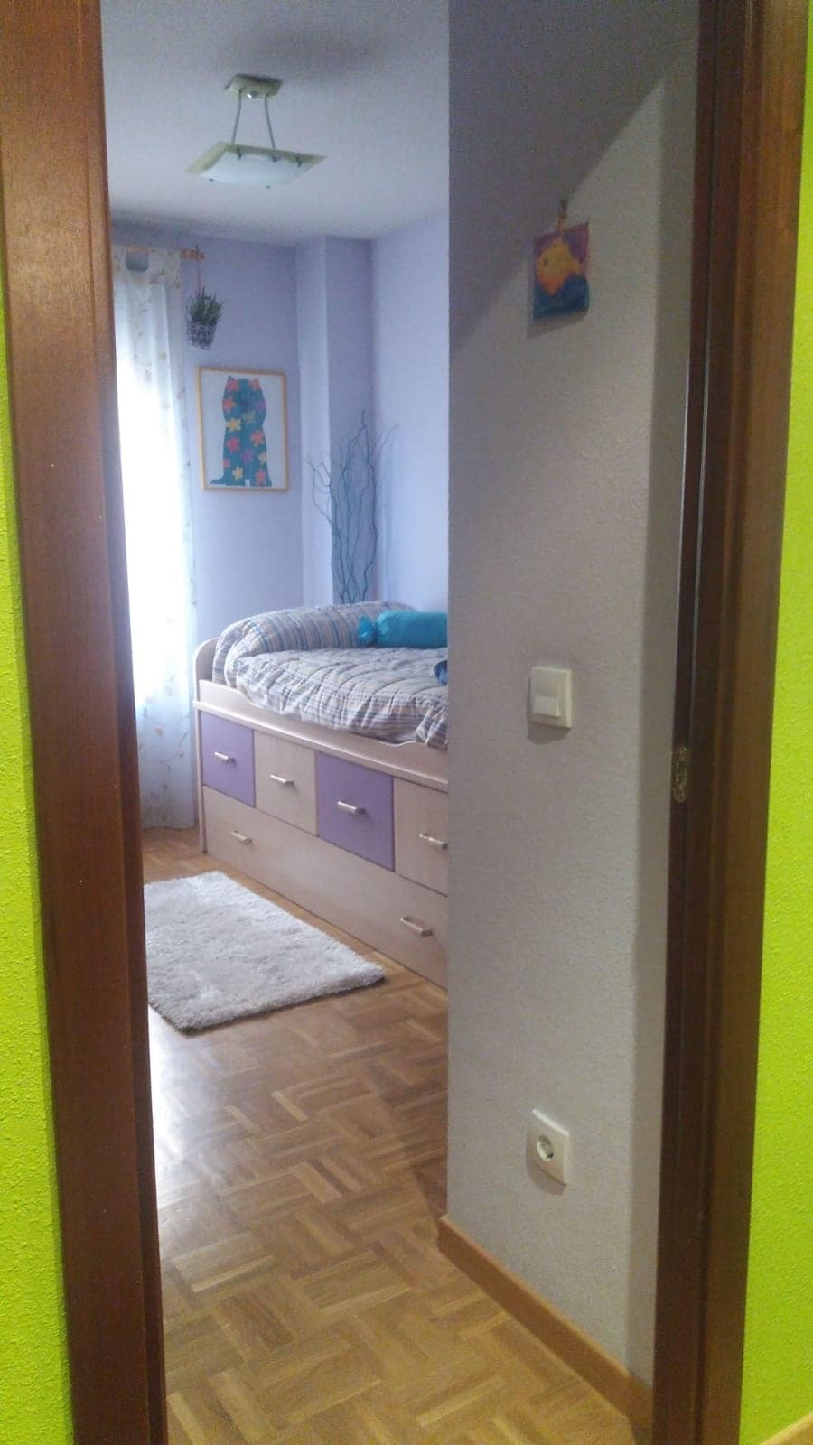 Բնակարան գերազանց վայրում Plaza España է Las Rozas de Madrid. Վարպետի ննջասենյակ ՝ երկտեղանոց մահճակալ Երկրորդական ննջասենյակ ՝ մեկտեղանոց մահճակալ Հյուրասենյակ ՝ մեծ բազմոց - մահճակալ: Շատ հարմարավետ, լիովին արտաքին: Խոհանոցը անկախ է Անվճար, շիլաներ, կակաո, թեյ, սուրճ, կաթ և ջուր Ամբողջական սպասք, անկողնային պարագաներ, սրբիչներ, վերմակներ Լոգասենյակ լոգարանով (ձեռքի գել, ցնցուղի գել, շամպուն, զուգարանի թուղթ) Հեռուստացույց հյուրասենյակում և շարժական օդորակիչ Սեղանի խաղեր երեխաների համար