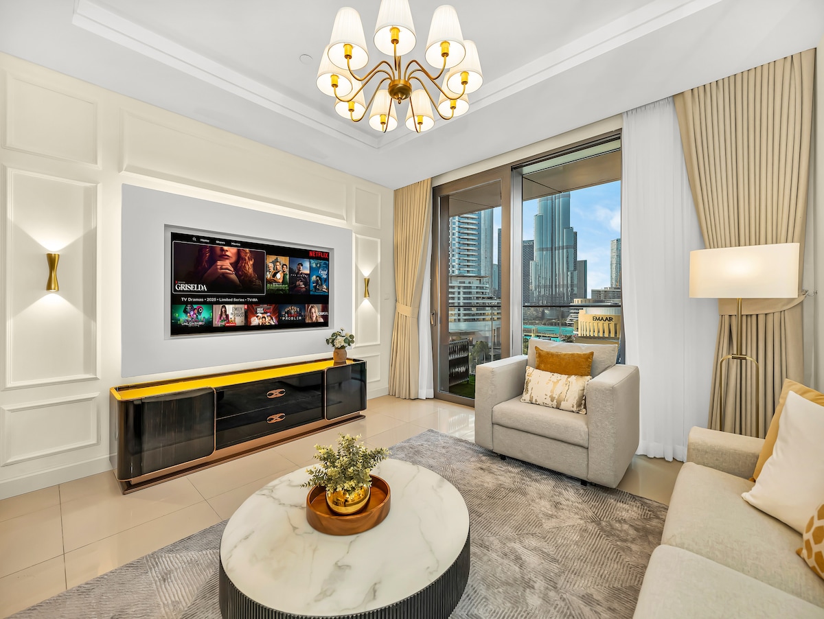 Այս բնակարանը բացառիկ հազվագյուտ է. Բուրջ Խալիֆայի լիարժեք, անարգել տեսարան՝ թե՛ ննջասենյակից, թե՛ հյուրասենյակից, երկու 75 դյույմանոց Smart TV-ներ, երկնաքերին նայող նվիրված աշխատանքային տարածք, պատվերով պատրաստված շքեղ ինտերիեր, շատրվանի, լուսային շոուի և Նոր տարվա հրավառության համար նախատեսված պատշգամբ, Դուբայի առևտրի կենտրոնի ուղիղ մուտք և Բուրջ Խալիֆայի տեսարանով անսահման լողավազան։Շատ պահանջված, իսկապես յուրահատուկ տուն Դուբայի կենտրոնում։