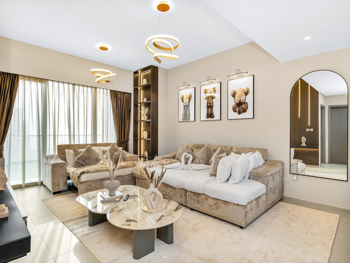 Experience 51st-floor luxury in this Downtown Dubai holiday home at Grande Signature Residence. Offering rare panoramic sea and skyline views, this luxury 1BR is a 5-minute walk to the Burj Khalifa, Dubai Mall, and Fountains. Featuring a PS5 (FC25), 65” Smart TV, and high-speed Wi-Fi, it is perfect for families and business travelers. Enjoy an infinity pool, gym, and chic lounges with YADO’s professional 5-star service and 24/7 support.