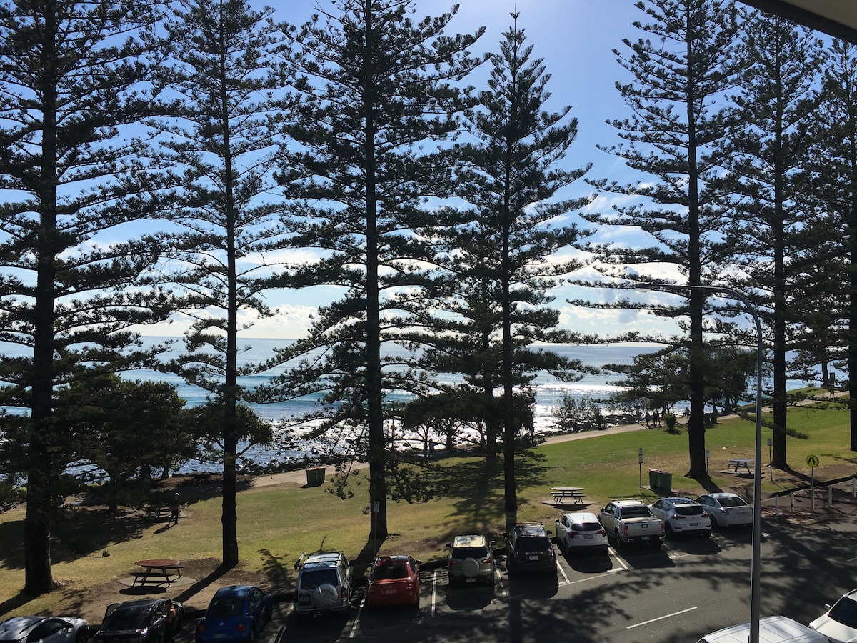 Հյուսիսային Փալմ լողափ, Գեղեցիկ փոքրիկ լողափնյա ստուդիա ՝ օվկիանոսի ամբողջական տեսարաններով, սեփական մուտքով, խոհանոցիկով, հեռուստացույցի լոգասենյակի պատշգամբով, որը նայում է դեպի լողափ ։ Լողավազան, սպա, սաունա, դուրս եկեք հետևի դարպասից դեպի լողափ, զբոսայգի կամ Թալլե սերֆինգի ակումբ ։ Կայանատեղը շատ սահմանափակ է, փորձեք ճանապարհի կամ կողային փողոցների վրայով ։ Երեկույթներ կամ լրացուցիչ հյուրեր չկան, քանի որ սա միայն ստուդիո է ՝ 1 ք/վ մահճակալով ։ 15 րոպե քշել օդանավակայանից, ավտոբուսի կանգառը 100 մետր հեռավորության վրա Burleigh 20 րոպե քայլել. Coles 1.5 klms