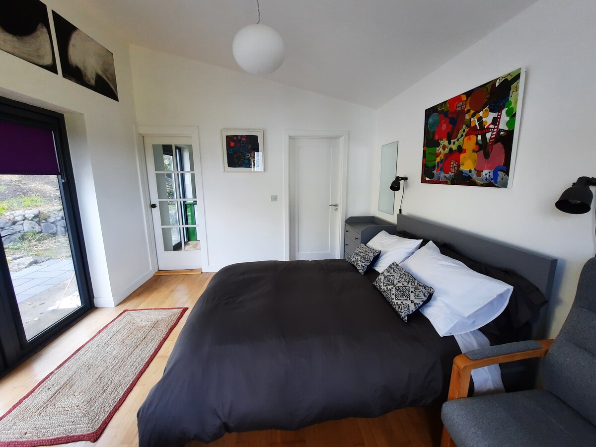 Գալվեյ Բեյի ցնցող տեսարաններով այս շքեղ ստուդիան գտնվում է շատ մասնավոր և գեղեցիկ լանդշաֆտային հողակտորի վրա: Մեր ճանապարհով ոտքով երեք րոպե քայլելը ձեզ տանում է դեպի ափամերձ գոտի ։ Գեղեցիկ արշավային արահետը գտնվում է Սուրբ Պատրիկի եկեղեցու կողքի բլրի վրա ։ Գտնվելով գեղատեսիլ Վայրի Ատլանտյան ուղու վրա գտնվող Նյու Քուեյ գյուղում ՝ մենք դեպի Բալիվան և Մոհերի ցիֆերը տանող ճանապարհին ենք ։ (Անհրաժեշտ է մեքենա. մենք գտնվում ենք շատ գեղեցիկ գյուղական տարածքում ՝ շատ սահմանափակ հասարակական տրանսպորտով )։