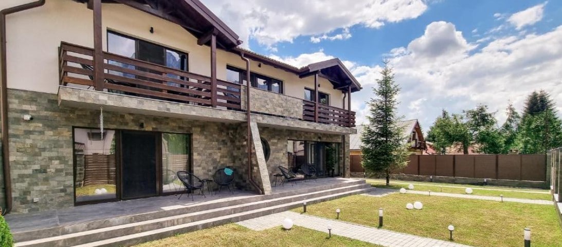 TwinHousesBusteni va pune la dispozitie 2 casute Aframe/ 4 locuri , in Busteni cu vedere la M-tii Bucegi si Crucea de pe Caraiman. Fiecare căsuță dispune de grătar propriu și de ciubăr. Prețul ciubărului este de 300 de lei si dureaza 4 ore sa il încălzim si va puteți bucura de el in jur de 5,6 ore, doar cu programare în prealabil. In interiorul căsuțelor nu se gătește,dar afara in foisor aveți un aragaz!