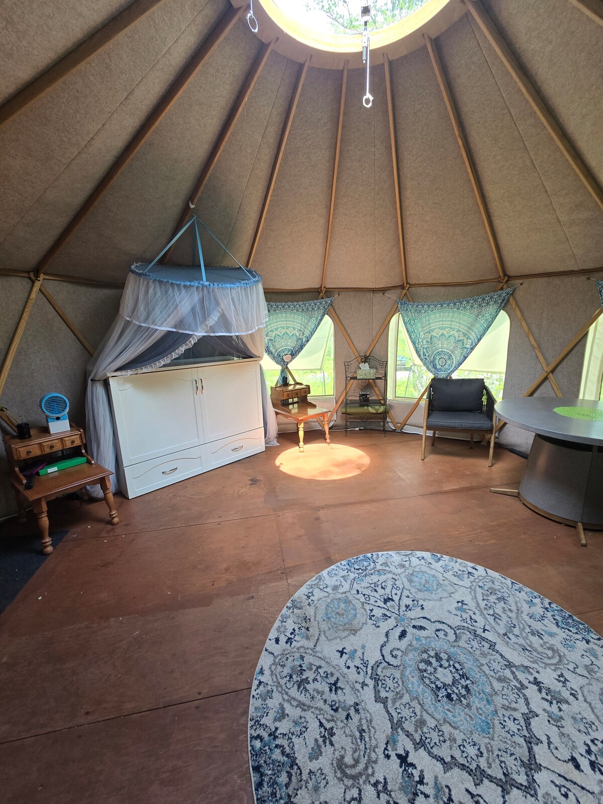 Վայելեք այս շքեղ գեոդոմը մասնավոր և գեղատեսիլ վայրում ։ Գտնվում է 200 ակր մակերեսով ավտոկայանատեղիում, որը կազմված է դաշտերից, անտառից և մեծ լճակից ։ Հանգստացեք էլեկտրական ջակուզիում և վայելեք գեղեցիկ տեսարանները ։ Օդորակիչ և ջեռուցում ։ Լոգասենյակ և խոհանոցիկ ։ Accesssible է ATV & snowmobile արահետներով, 5 րոպե: Ուղեւորություն դեպի Poley լեռնադահուկային հանգստավայր & մի կարճ Ուղեւորություն դեպի Fundy Trail. 20 րոպե: քշել դեպի մոտ քաղաքի Sussex, որտեղ մի շարք ռեստորաններ եւ խանութներ կարելի է գտնել. Նույն վայրը ՝ Մեծ փախուստ (քնում է 5)