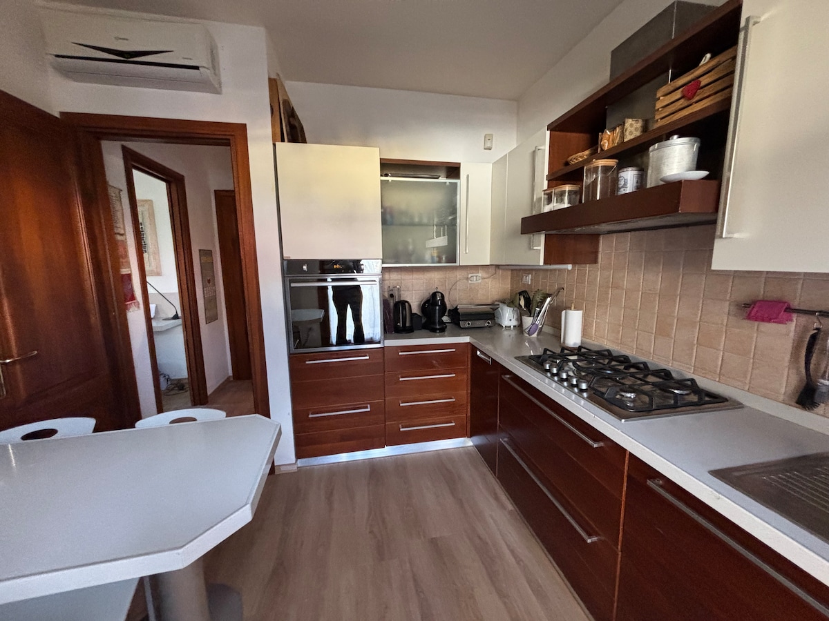 Private townhouse with large terrace and free street parking in Olbia's Aldo Moro district. King bedroom, quality sofa bed (sleeps 4), CREO designer kitchen, smart TV, fiber Wi-Fi, and washer-dryer. Walk to cafes, bakeries, and supermarkets in minutes. Pittulongu and Bados beaches 15 min drive. 24/7 smart check-in. Managed by RENTAL12: real people, fast responses, and 600+ 5-star reviews across our Sardinia portfolio.