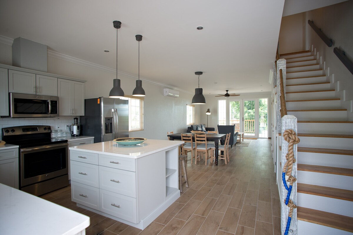 Առագաստանավային լոֆթ նավահանգիստը մեր նպատակային կառուցված հյուրերի դուպլեքսի ձախ կողմն է ։ Մեր Sail Loft դուպլեքսն ունի երկու առանձին, բայց նույնական արդյունավետության առանձնաբաժին, որոնցից յուրաքանչյուրը հագեցած է մեծ մահճակալով, լոգասենյակով և խոհանոցիկով ։ Լողավազանը համօգտագործվում է մյուս կողմում մնացող հյուրերի հետ ։ Զբոսնեք նավահանգստում և օգտվեք մեր SUP - ներից և կայակներից այն ջրանցքում, որտեղ ձեզ երաշխավորված է տեսնել կրիաներ: Արագ Wi - Fi - ը թույլ է տալիս աշխատել տնից, եթե անհրաժեշտ է: Netflix - ով սմարթ հեռուստացույցներն օգնում են հանգստանալ զվարճանքի օրվանից հետո ։