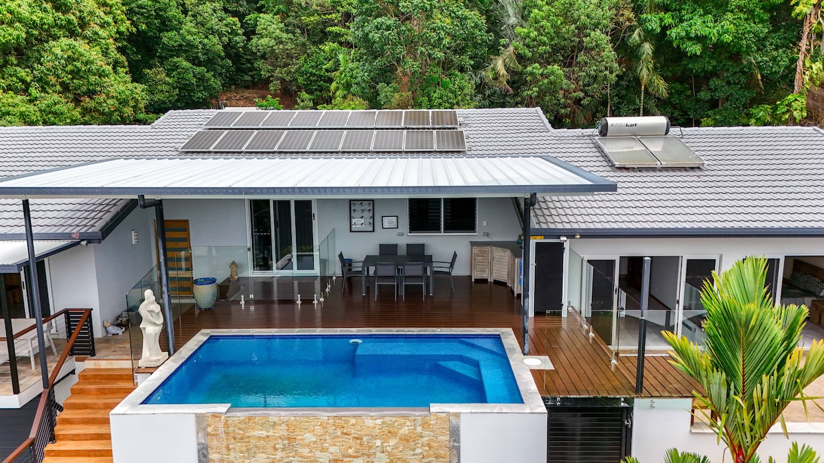 Քանդեք մեր խաղաղ ինքնամփոփ հյուրատունը, որը տեղադրված է 3 հեկտար անխռով կանաչապատ տարածքում ։ Արթնացեք բնիկ թռչունների երգի ձայնից, զովացեք լողավազանում և վայելեք հյուրատան շրջակայքում գտնվող կարմիր ոտքերով պադեմելոններ, գծավոր կոկտեյլներ և վայրի բնություն տեսնելու հնարավորությունը ։ Հյուրատունը մասնավոր է, հարմարավետ և կատարյալ է Cairns - ը, Kuranda - ն, Mareeba - ն և Atherton Tablelands - ը ուսումնասիրելու համար: Մենք ապրում ենք սեփականության հիմնական տանը և ուրախ ենք անհրաժեշտության դեպքում օգնել ։
