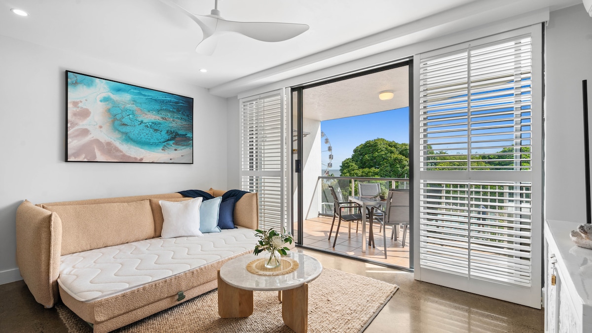 Հիասքանչ ափամերձ ՎԱՅՐ ՝ Կորալյան ծովի ցնցող տեսարաններով, Cairns Esplanade - ով և գիշերային շուկաներից վերև ։ Գտնվում է 5 - րդ մակարդակում ՝ Քեյրնս քաղաքի հենց սրտում, որտեղ կարող եք մի քանի րոպեի ընթացքում հարմարավետորեն քայլել ամենուր, շուկաներում, հիանալի ռեստորաններում և գնումներում: Զբոսնեք զբոսայգով դեպի շիթ ՝ բոլոր խութերով շրջագայությունների համար, կամ գուցե նախընտրեք պարզապես հանգստանալ պատշգամբում և հետևել, թե ինչպես է անցնում աշխարհը: Դուք կվայելեք անվերջ հանգիստը ։