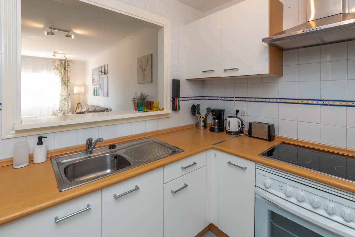 Willkommen in unserer modernen Ferienwohnung in Calahonda! Nur 7 Minuten zu Fuß vom Sandstrand entfernt, erwartet dich hier ein komfortabler und entspannter Aufenthalt in einer ruhigen, geschlossenen Wohnanlage mit zwei Pools und viel Grünfläche. Die 95 m² Wohnung besteht aus zwei Schlafzimmern mit gemütlichen Doppelbetten sowie einem offenen Wohnbereich mit einem großen Schlafsofa, einem Esstisch und einem kleinen Arbeitsplatz– ideal für längere Aufenthalte oder gemütliche Workations.