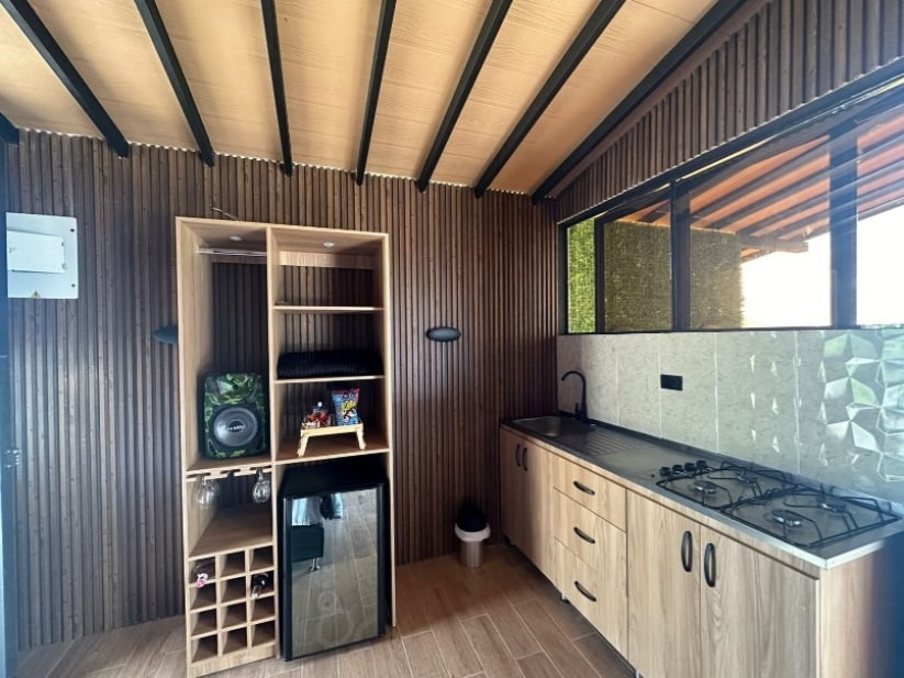 Our SUITE SUNSET consists of private jacuzzi with great view, catamaran net, one comfortable bedroom with Queen-size bed, living room with sofa bed, complete bathroom, balcony, dining room and fully equipped kitchen in a total area of 60 square meters. GRAN VISTA Glamping and Suites is the country accommodation with the best view of Pereira and only 15 minutes from the city center and airport. Breakfast included. Optional exquisite menu for lunch, dinner and cocktails.