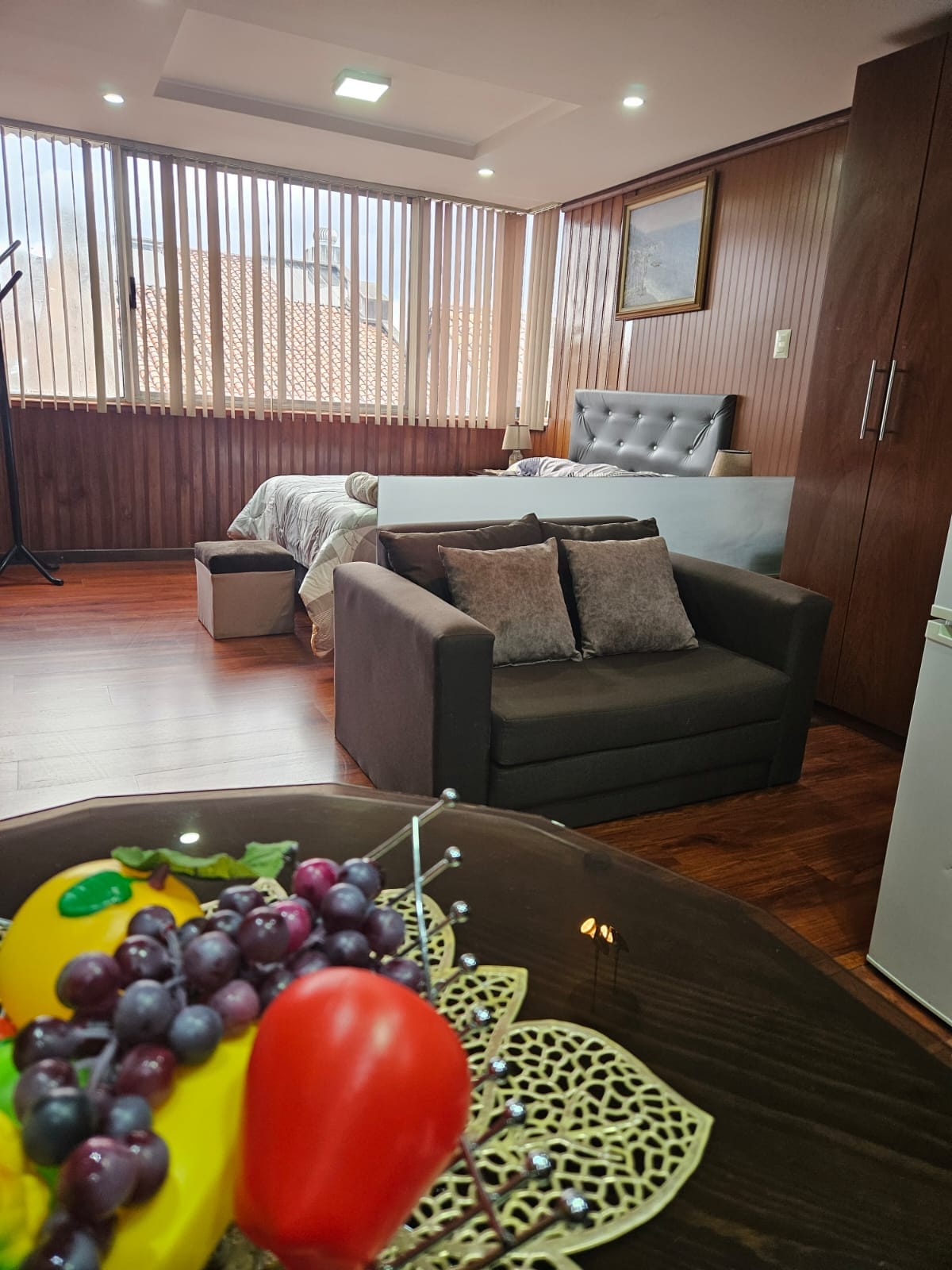 Disfruta de una estadía cómoda en esta moderna suite ubicada en el corazón del centro histórico de Cuenca. Cuenta con una cocina totalmente equipada, dormitorio elegante con cama matrimonial, baño moderno, área de comedor tipo barra y un sofá cama en la sala. Ideal para parejas o viajeros que buscan confort, estilo y una ubicación privilegiada, cerca de restaurantes, museos y atractivos turísticos.