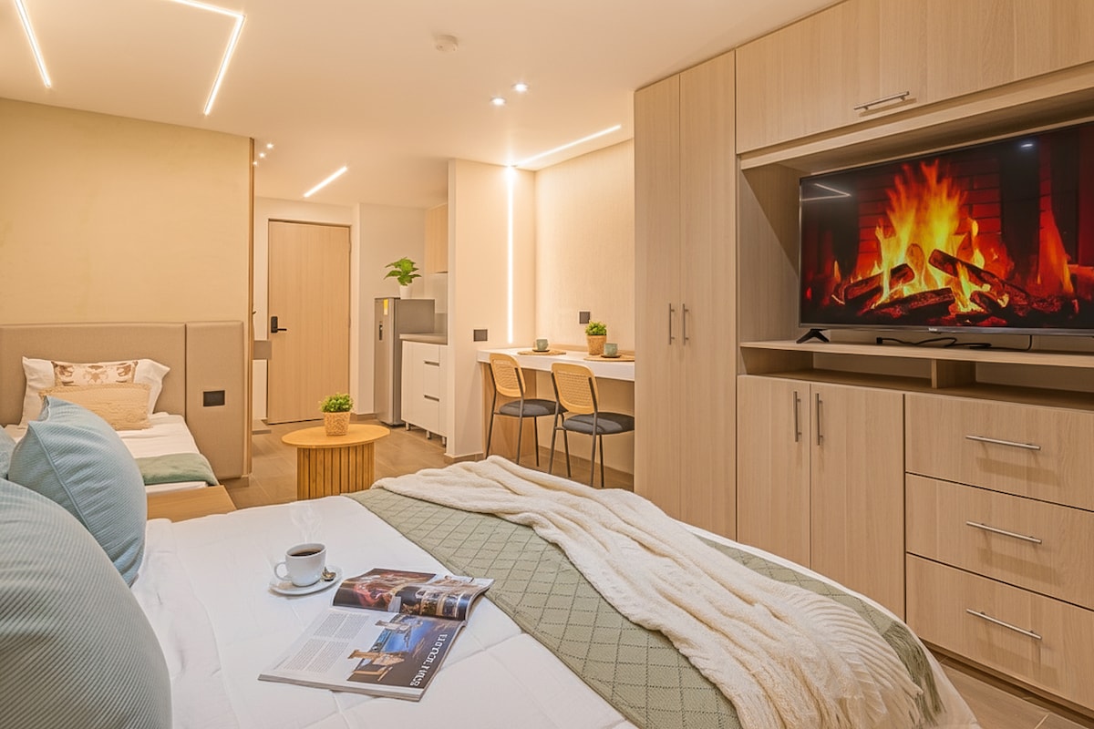 Գտնվելով հանգիստ, կենտրոնական տարածքում ՝ այս տարածքը մտածված կերպով նախագծվել է ձեզ հանգիստ հանգստի համար, որտեղ մինիմալիզմը բավարարում է ջերմությունն ու ֆունկցիոնալությունը ։ Մթնոլորտը միավորում է ճապոնական դիզայնի պարզությունը սկանդինավյան տարրերի փափկության հետ ՝ ստեղծելով հանգստի և հարմարավետության մթնոլորտ: Անկախ այն բանից ՝ գալիս եք հանգստանալու, թե աշխատելու, այստեղ կգտնեք ձեր բարեկեցության համար կատարյալ հավասարակշռություն ։