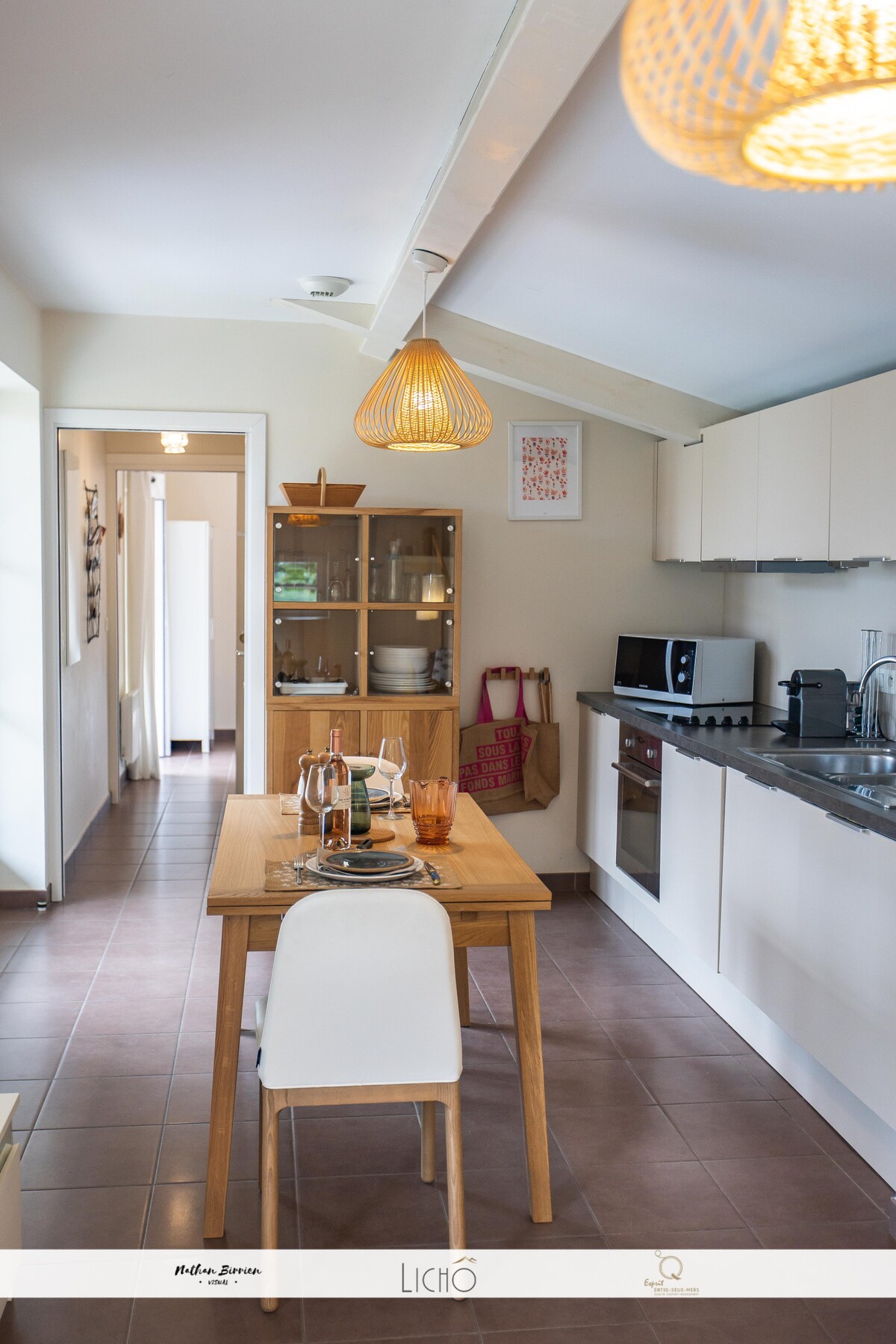 NOUVEAU Maison T2 de 40m² entièrement rénovée en 2025, au calme garanti. Profitez d’un espace cosy et apaisant, parfait pour 2 à 4 personnes. Séjour avec cuisine aménagée et équipée, bénéficiant d'un canapé convertible pouvant accueillir 2 personnes supplémentaires. Jolie chambre de 16 m², literie neuve 180x200 avec dressing. Belle salle de bain spacieuse avec sa grande douche. Climatisation réversible. Parking juste devant le logement, au calme. Arrivée autonome avec boîte à clés 🔑