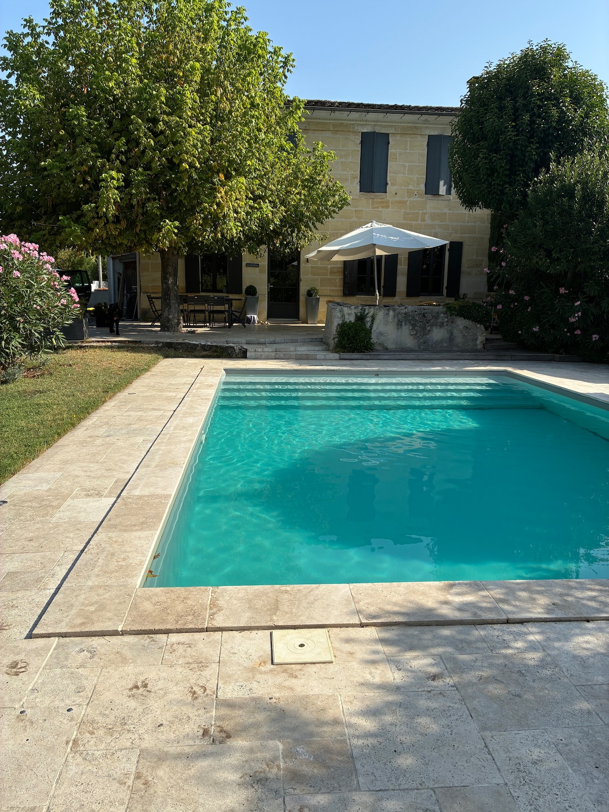 Belle villa climatisée de 160 m2, au sein d'un joli village sur les hauteurs de Bordeaux (église du XII eme siècle à 100m). Située dans le vignoble vallonné des premières côtes, la maison est située à 15mn de Bordeaux. Alliant confort et proches commodités, la villa est implantée sur un terrain de 1900 m2 avec terrasse de 180 m2 et piscine (10x5) chauffée en saison. Le jardin est au calme; bordé de magnifiques chênes ils permettent de se prélasser à l'ombre, toujours au bord de la piscine.