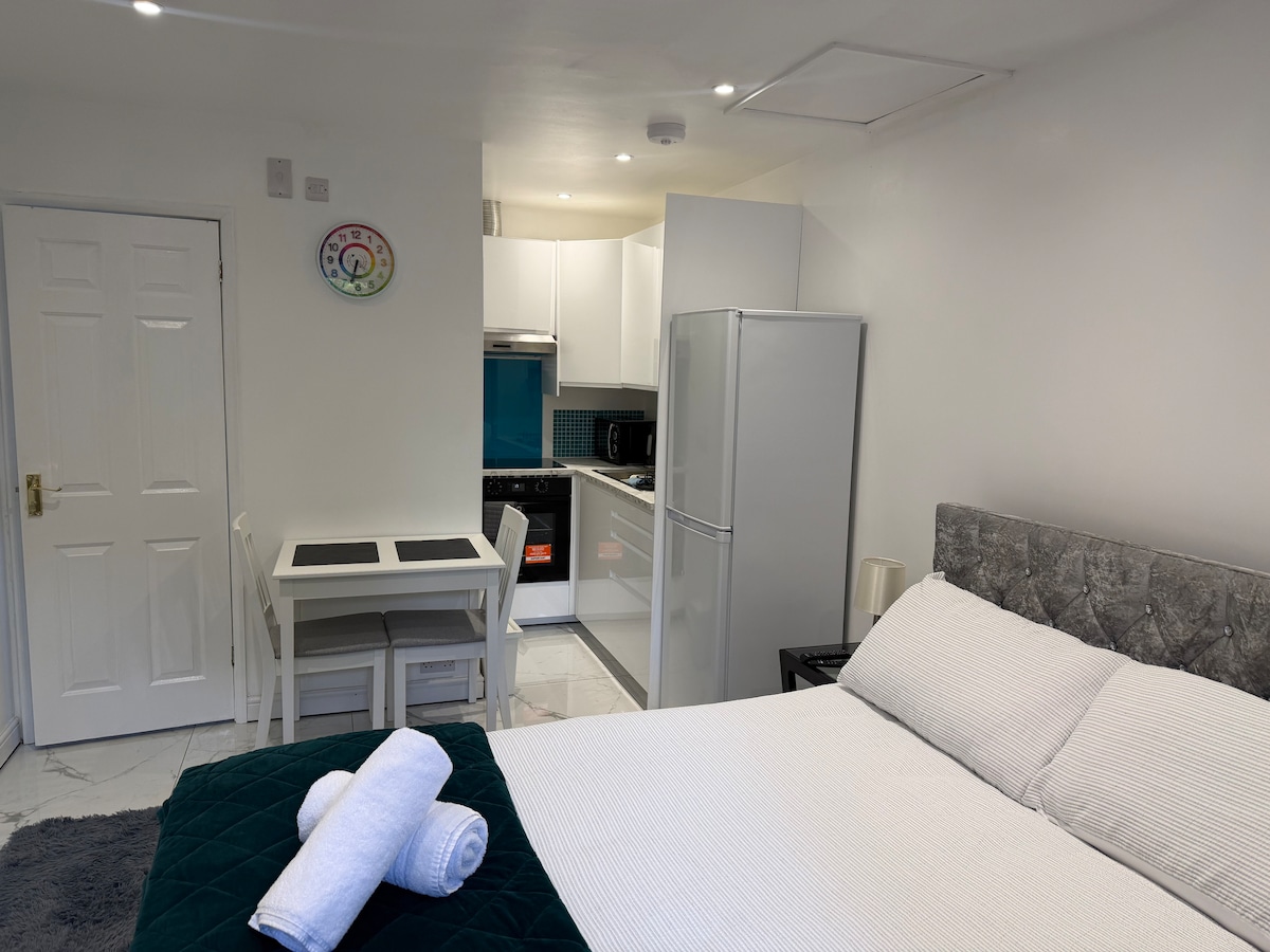 Մեր նորակառույց 28մ² Garden Studio - ն գտնվում է գեղատեսիլ Քեմ գետից 3 րոպե հեռավորության վրա և հարմարավետորեն գտնվում է Քեմբրիջի սրտում: Այս գեղեցիկ դիզայնով տարածքում կա մեծ մահճակալ և փափուկ բազմոց, որը համալրվում է հատակի ջեռուցմամբ և սև շերտավարագույրներով ՝ ապահովելով հարմարավետ մթնոլորտ ։ Այս պարտեզի հանգիստն առաջարկում է հարմարավետության և հանգստության կատարյալ համադրություն առանձին բացօթյա նստատեղի հետ: Տարածքում կայանատեղ չկա, սակայն կարելի է խորհուրդ տալ մոտակայքում գտնվող կայանատեղիներ ։