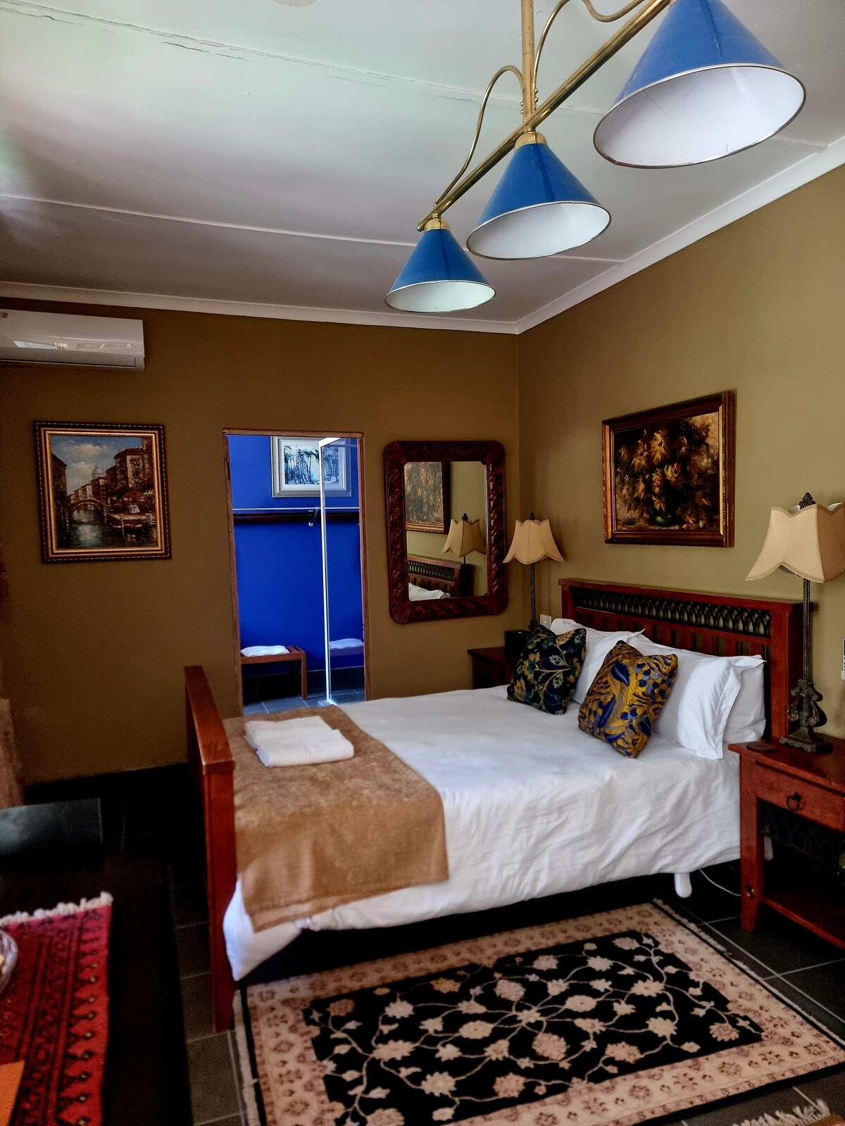 Այս մեկը, մեկը առավել հմայիչ եւ պատմականորեն նշանակալի է Graaff - Reinet գեղատեսիլ Parsonage փողոցում, առաջարկում է երեք ննջասենյակ բոլորը երկտեղանոց մահճակալների, բոլորը en – Suite – մեկը ցնցուղ, եւ երկու փոքր բաղնիք/համակցված ցնցուղ պայմանավորվածությունների. Կա լիովին կահավորված խոհանոց, առանձին ճաշասենյակ և նիստերի դահլիճ ։ Արտաքինից կա հարթեցված զվարճանքի վայր ՝ սեղանով և աթոռներով, որոնք տանում են դեպի կից առանձին պատերով տարածքում գտնվող լողավազան ։