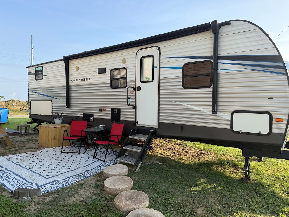 Enjoy the best the Gulf Coast has to offer by staying with us in our fully-renovated RV just steps away from Little Florida Beach, in Cameron, Louisiana. The beach is very quiet, pristine, and untouched. You will enjoy peace and tranquility, and great fishing! Right across the street is the Peveto Woods birds sanctuary - a treasure trove of protected wildlife. The RV is spacious and fully loaded, with love and attention paid to each detail. Enjoy high-speed Starlink internet and a BBQ grill!