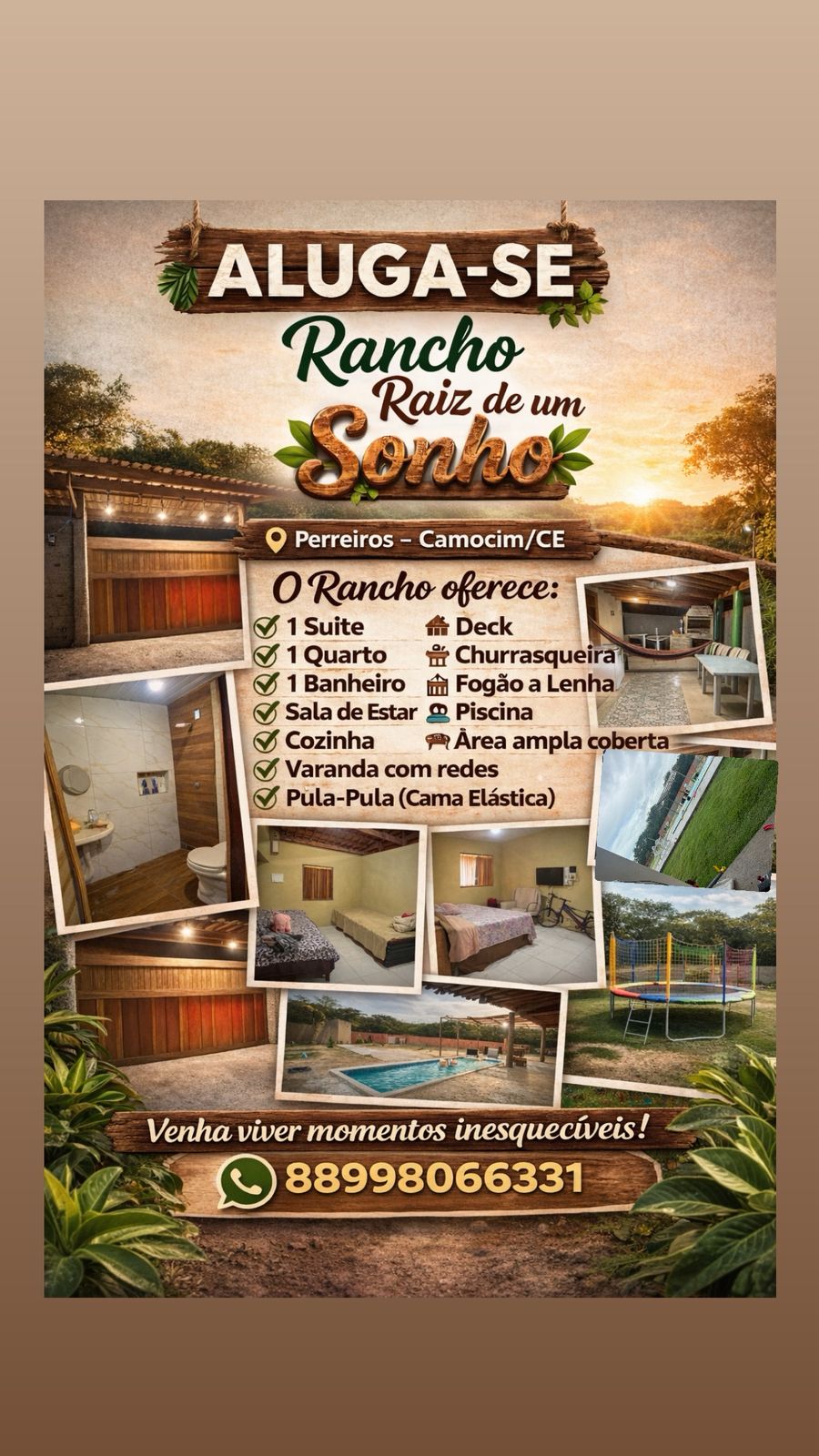Տատաժուբա լողափում գտնվող մեր բունգալոն ունի լողավազան, խոհանոց և անզուգական տեսարան դեպի ավազաբլուրներ ու օվկիանոս։ Բնությունը և մայրամուտը սիրողների համար սա կատարյալ վայր է՝ լողափին ուղղակի ելքով։ – Մենք առաջարկում ենք քվադրոցիկլետների և ֆեթբայքերի վարձույթ։ – Մենք առաջարկում ենք կայթսերֆինգի ծառայություն մեր Ohana Kitesurfing Club դպրոցում (դասեր, վարձույթ, քամուց օգտվելու հնարավորություն և այլն) - Սեփականատերերն ապրում են շքամուտքում և միշտ հասանելի են