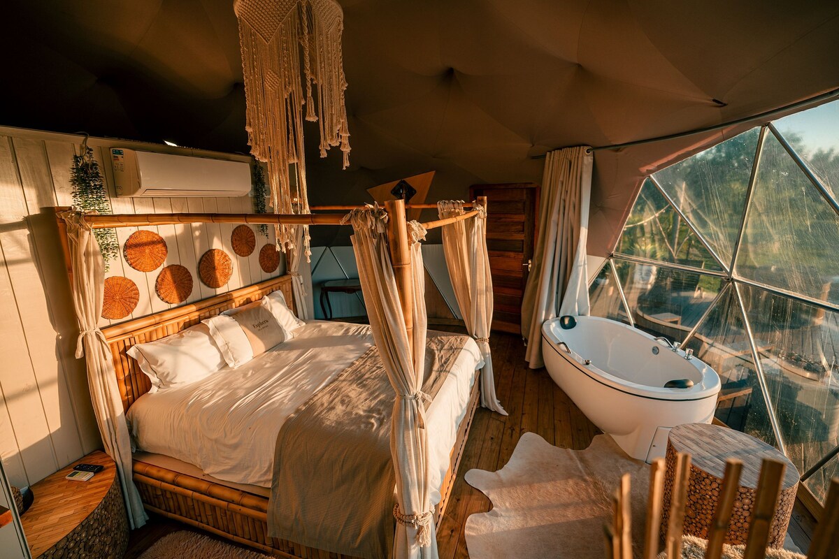 Esphera Glamping, որը գտնվում է Gravataí/RS - ում: Բնության գրկում և ենթակառուցվածքով շրջապատված մեր հյուղակներն ունեն այս գեղեցիկ գնդաձև ձևը: Ապրել այս գլոբալ թրենդը, որը գլեմփինգ է շատ ոճով և անհատականությամբ: Esphera - ն վերաբերում է մեր գեոդեզիական գմբեթների ձևին և այն յուրահատուկ մթնոլորտին, որը մենք ստեղծում ենք այստեղ: Անվտանգ արկածներ և հարմարավետությամբ խուսափեք առօրյայից ։ Եկեք և վայելեք անհավանական փորձառություն ։