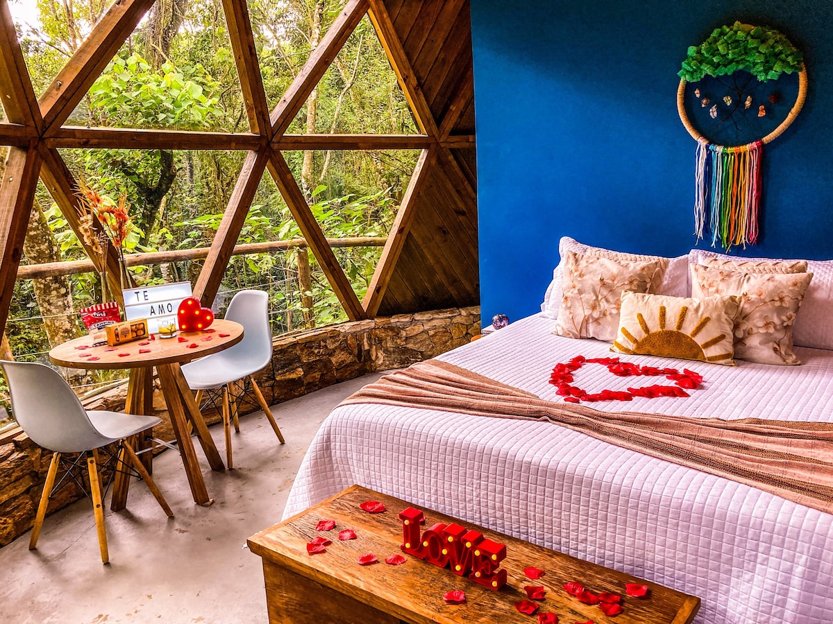 Descubra o refúgio perfeito na Mata Atlântica de Mairiporã! Hospede-se em nosso Domo geodésico, cercado pela natureza exuberante. Desperte ao som dos pássaros, desfrute da vista panorâmica, se der sorte pode alimentar com bananas os moradores da floresta. Conforto, privacidade e contato com a natureza em uma experiência única. Reserve agora e mergulhe nessa aventura! Aproveita e já entra no Insta, nos siga @domodamata Fique por dentro das novidades que rolam por aqui, sejam bem vindos! ❤️