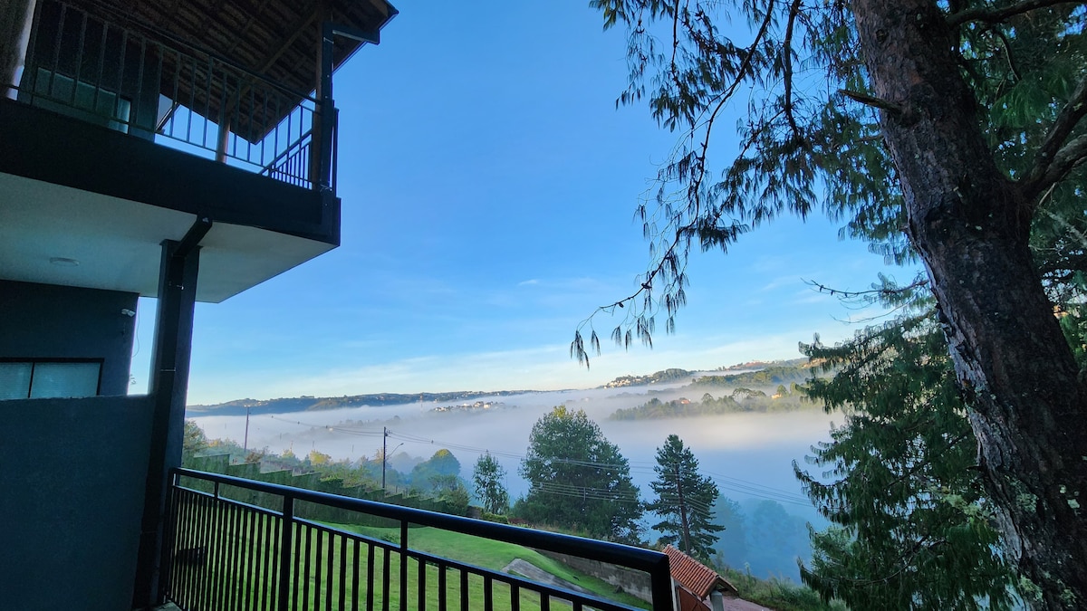 Lindo Apartamento!!! Հարմարավետորեն ընդունում է մինչև վեց հյուր!!! Բոլորովին ՆՈՐ և ԶԱՐԴԱՐՎԱԾ Campos do Jordão - ի կենտրոնում, հյուրասենյակ, որը ինտեգրում է կղզու խոհանոցը և գեղեցիկ պատշգամբ ՝ առանց ծխի գուրմանական գազի մանղալով, հյուրասենյակում գազի բուխարիով, գազի ցնցուղներով, երկու գեղեցիկ ննջասենյակներով, ընդարձակ կոնդոմինիումում ՝ ջեռուցվող լողավազանով, սաունայով, թենիսի կորտով, արահետով, ռեստորանով, խաղասենյակով և խաղասենյակով, բացի անտառի հիանալի տեսարանից հիասքանչ է անտառի համար...