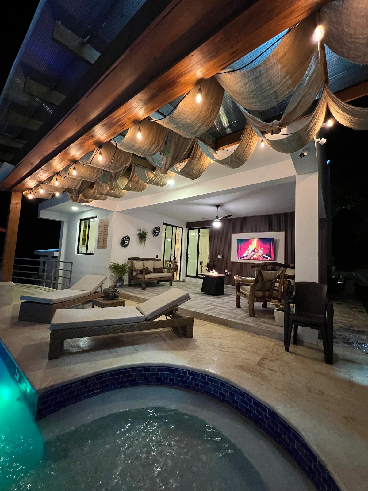 Sunview Villa is the perfect place to retire away from the city and enjoy your deserved vacation relaxing with your friends or family. In our private patio you have a wide space to share; roofed terrace with a 55" TV with Stereo System, BBQ area, patio with table, and our great pool & cascade and hot jacuzzi! 10 minutes away from the airport, 10 minutes away from the city center, and 5 minutes away from Playa Dorada, Our Villa is perfectly located! Chef service available! Events organization!