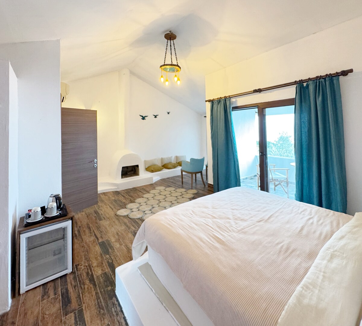 Enjoy a peaceful seaside escape in this spacious suite located in the heart of nature, right by the Aegean Sea. The room features a private balcony with breathtaking garden and sea views, a comfortable double bed, air conditioning, and a minibar. Guests enjoys complimentary breakfast served by the beach, along with their own dedicated sunbed, umbrella, and beach towels set up by the shoreline exclusively reserved according to the number of guests. A perfect getaway for couples or solo travelers.